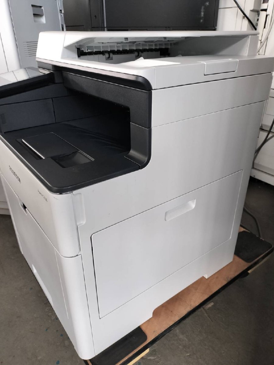 | 現状 | 用紙サイズA4、レター、リーガル 連続複写速度 カラー/モノクロ:35枚/分(A4) 連続複写枚数 999枚 大きさ 幅420×奥行500 ×高さ565 mm 約34kg ・コピー、ファックス、プリンター、スキャン機能のテストを行いました。 特に問題なく動作良好です。 ・純正トナー残量は写真にてご参照ください。そのままお付けいたします。カラーは満タンですが、黒はそろそろご交換が必要となります。 ・外観には若干の擦れや汚れあります。 |