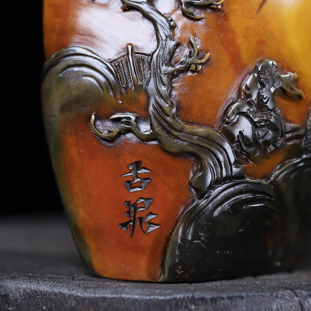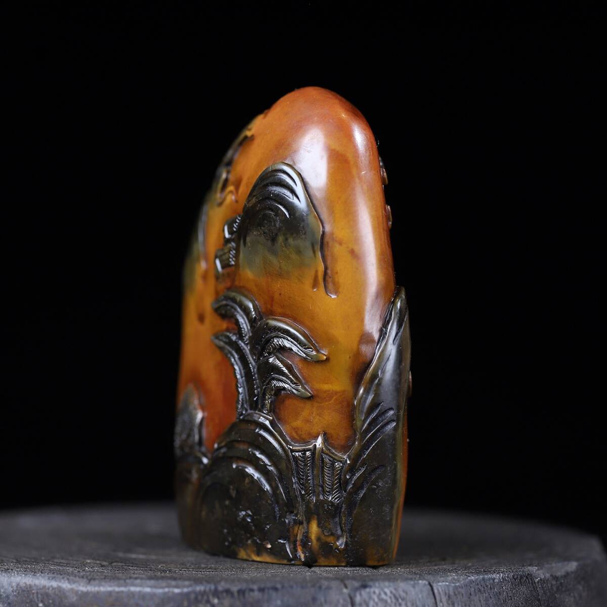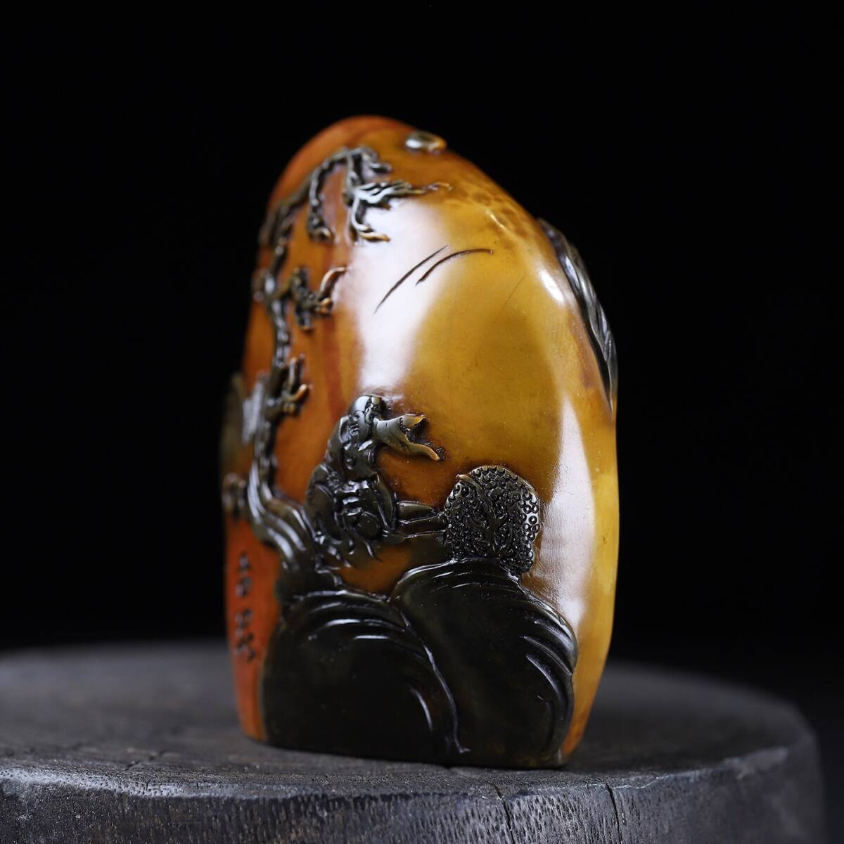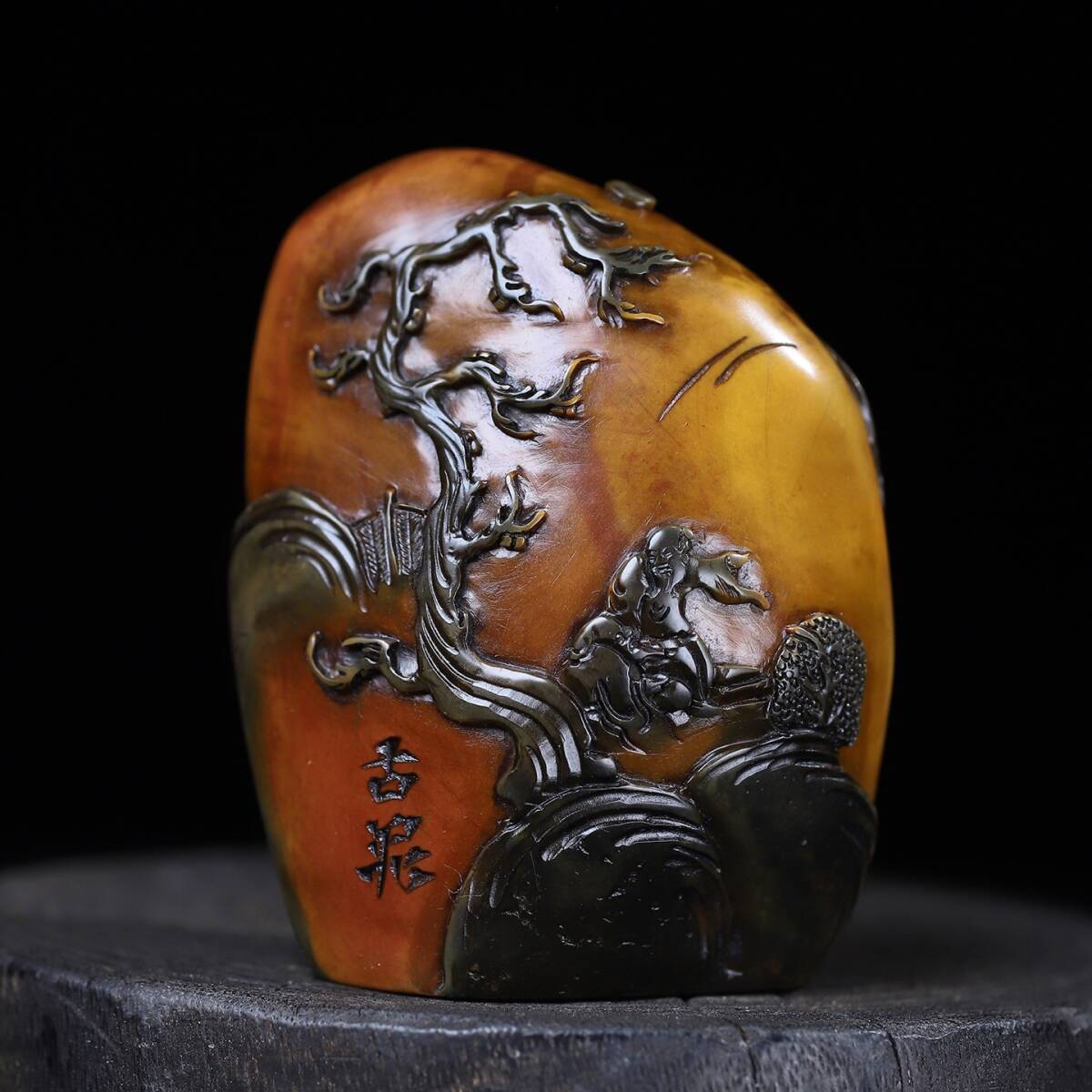【超珍館蔵】寿山石 烏鴉皮 田黄石 細密彫 松下輪道紋印章 印章 印鑒 文房具 書道品 古賞物 古董品 古美術品 時代物 旧家蔵出 稀少珍蔵品