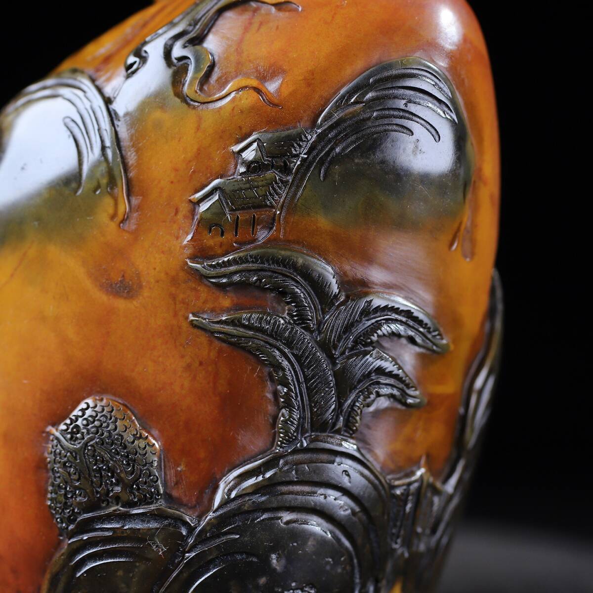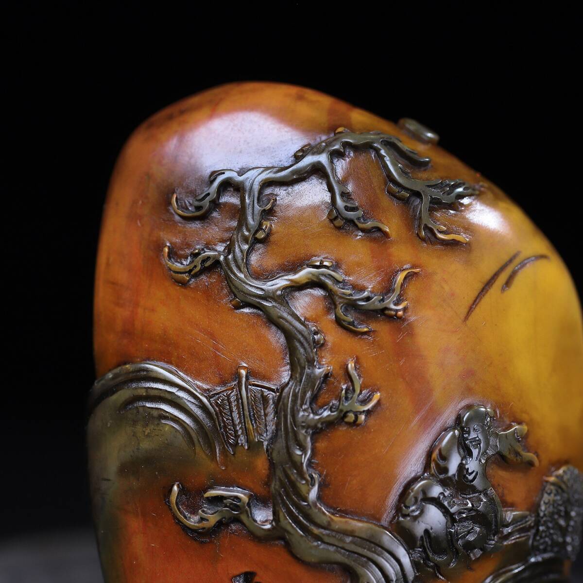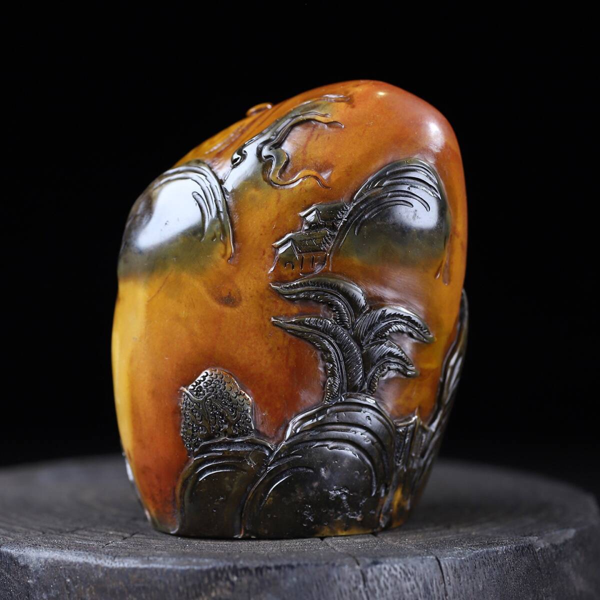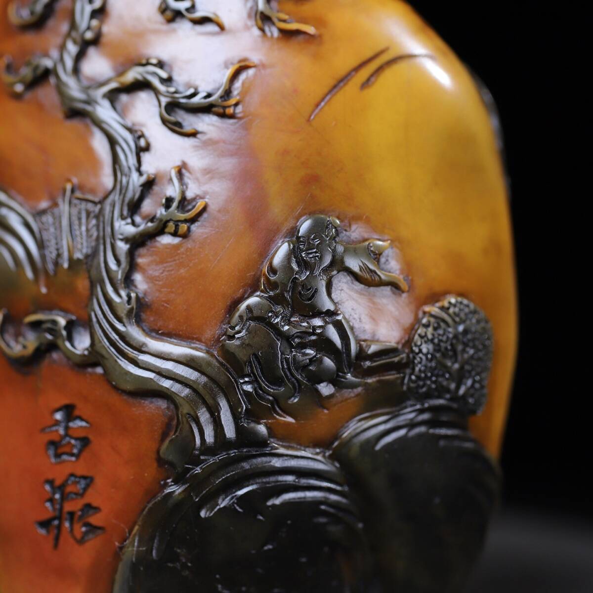 【超珍館蔵】寿山石 烏鴉皮 田黄石 細密彫 松下輪道紋印章 印章 印鑒 文房具 書道品 古賞物 古董品 古美術品 時代物 旧家蔵出 稀少珍蔵品