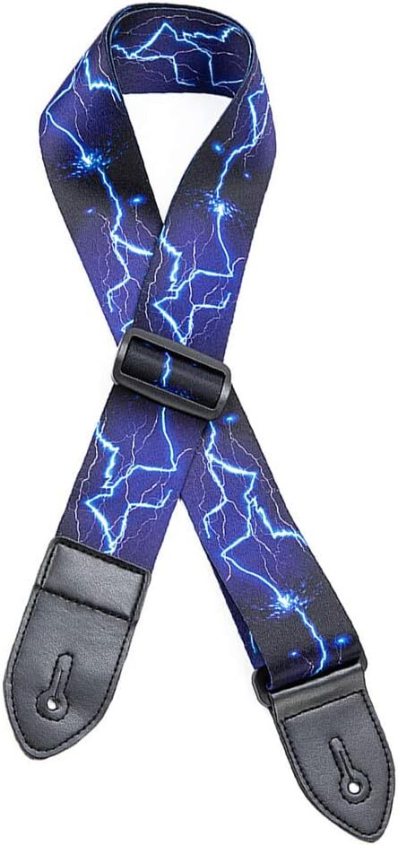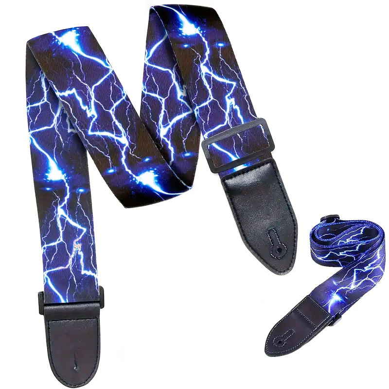 ◆ ギター ストラップ (青い稲妻) &ネックホルダー&ストラップロック&ピック(3枚)◆4点セット ◆