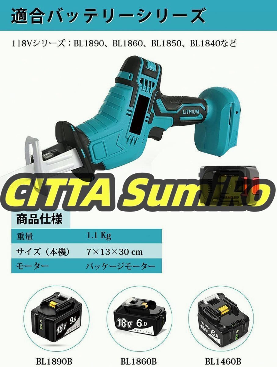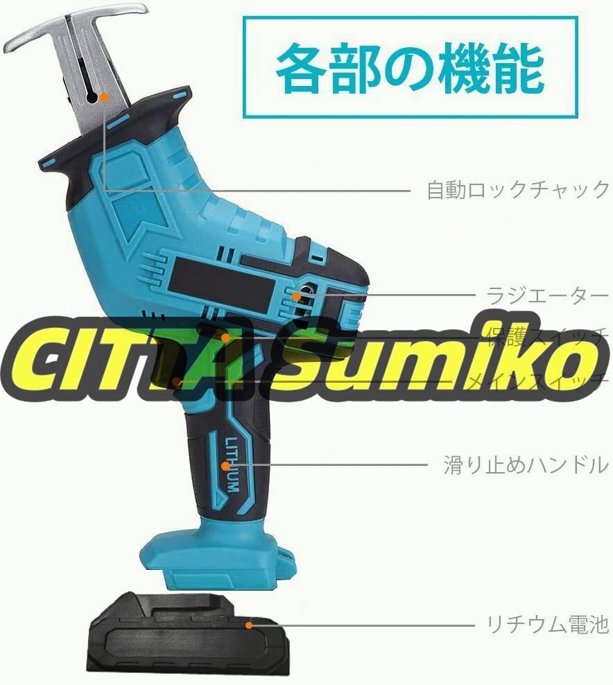 未使用 充電式レシプロソー 充電式のこぎり 無段変速 コードレスレシプロソー 木工切断 充電器バッテリ*1 マキタ 18Vバッテリー併用