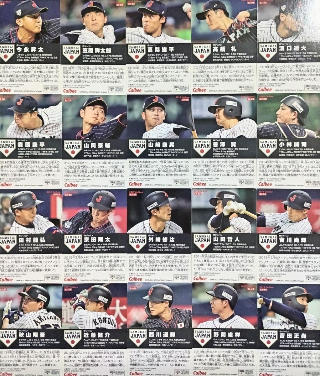 SJ-02今永(横浜DeNA)、05笠原(中日)、07高梨(楽天)、08高橋(ソフトバンク)、11濱口(横浜DeNA)、16森原(楽天)、17山岡(オリックス)、18山崎(横浜DeNA)、20會澤、22小林(巨人)、23田村(ロッテ)、28京田(中日)、31外崎(西武)、35山田(ヤクルト)、36吉川(巨人)、37秋山(西武)、39近藤、41西川(日本ハム)、42野間/金サイン(広島)、44吉田(オリックス)