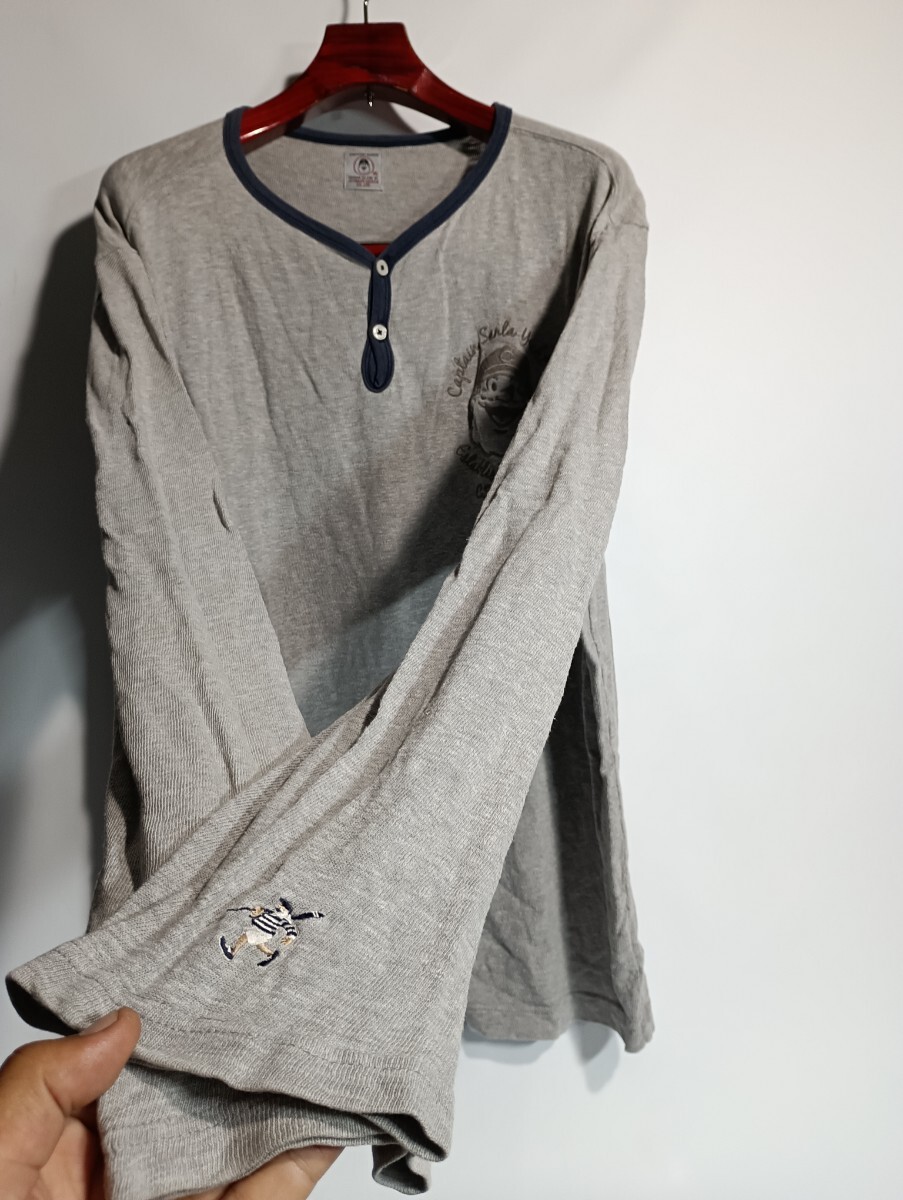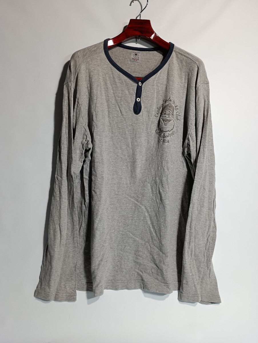 CAPTAIN SANTA キャプテンサンタ ジョイマークデザイン 刺繍デザイン 肉厚 ヘンリーネック長袖Tシャツ ロンT カットソー 霜降りグレー XL