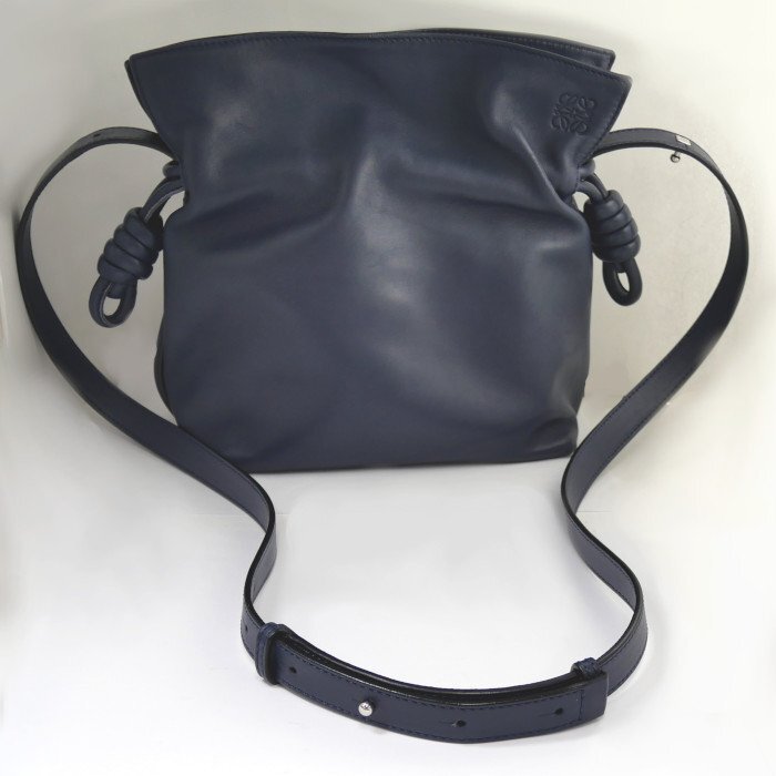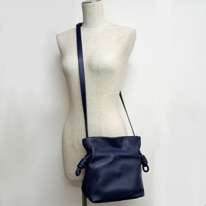 LOEWE ロエベ フラメンコ レザー ショルダー バッグ ネイビー アナグラム です。 ソフトでしなやかなレザーを使用したロエベ フラメンコ バッグです。シグネチャーであるコイル状の結び目で仕上げられたドローストリングで開閉することができます。使い勝手のよいサイズ感は機能性も抜群です。 角スレ、薄っすらとした線キズ・擦れがございますが、大きなダメージはなくまだまだご使用いただける商品です。ブラウザの環境や設定、モニタの種類により色味が若干異なる場合がございますので、予めご了承の程お願い致します。皆様のご落札をお待ちしております。 |