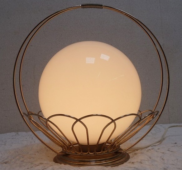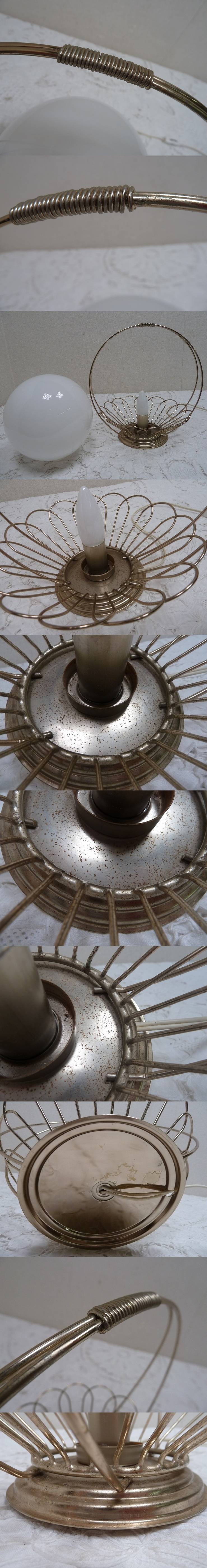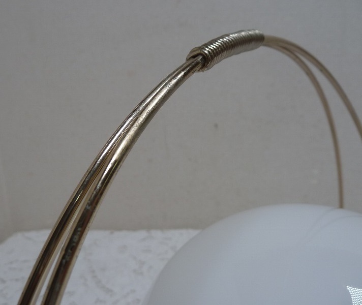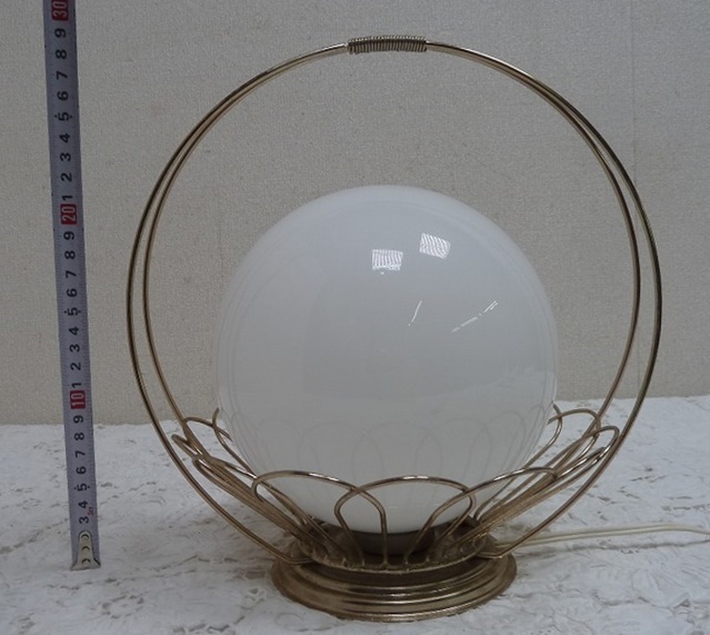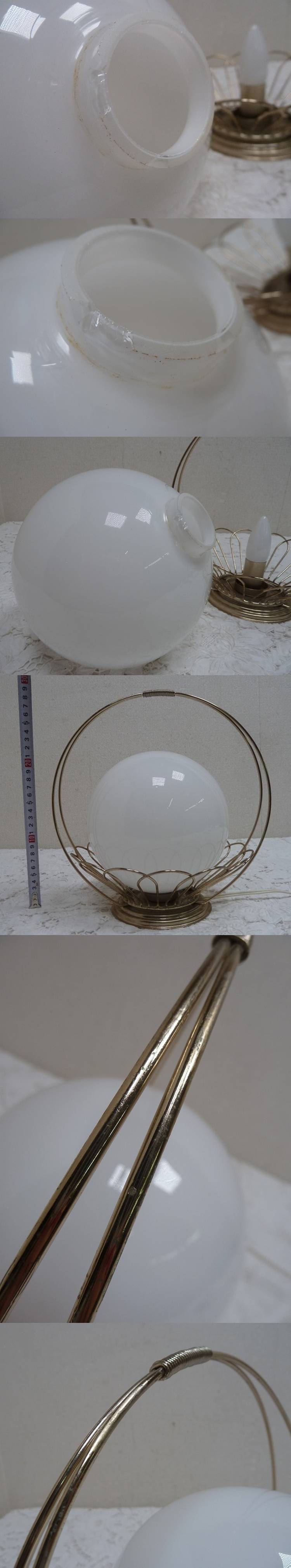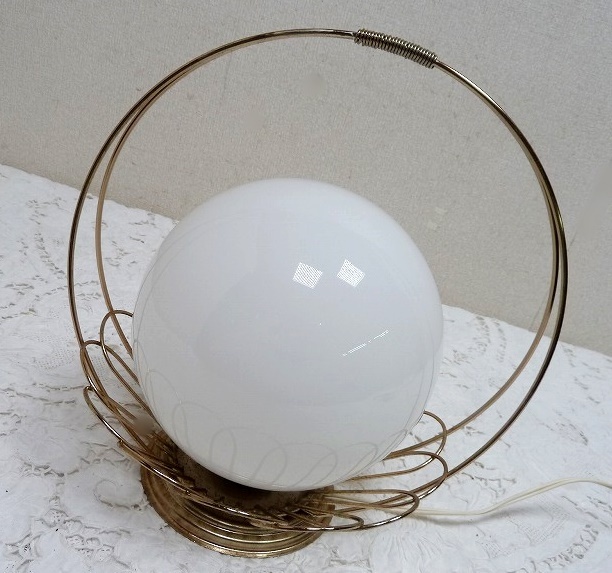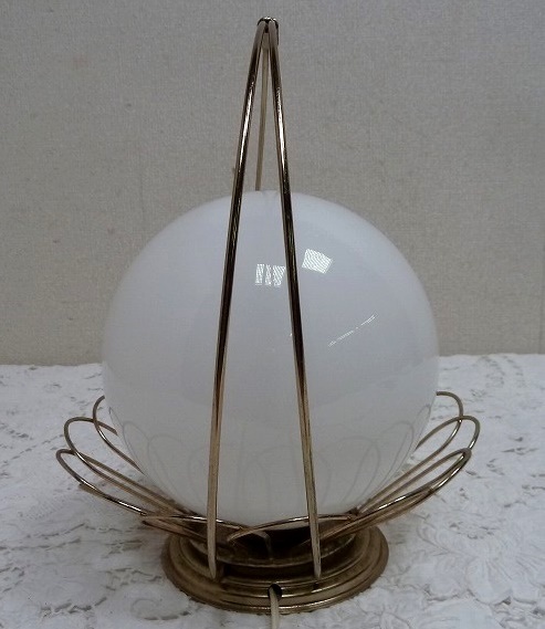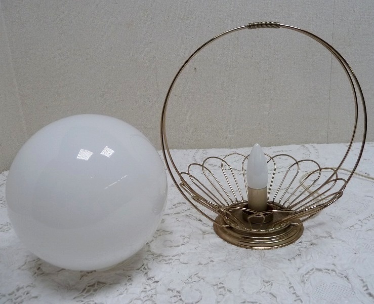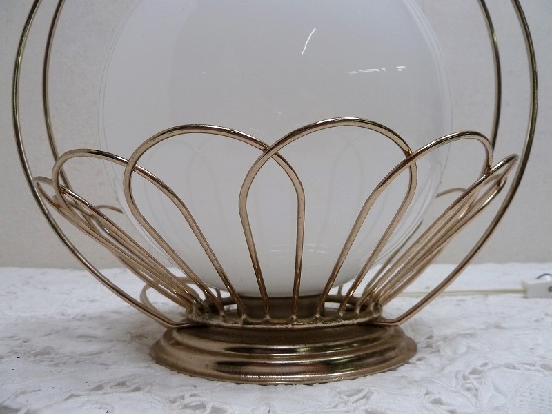 (☆BM)昭和レトロ 球体 テーブルスタンド 卓上照明 ホワイト×ゴールド 白 バスケット型 ランプ ライト ステンレス ガラス