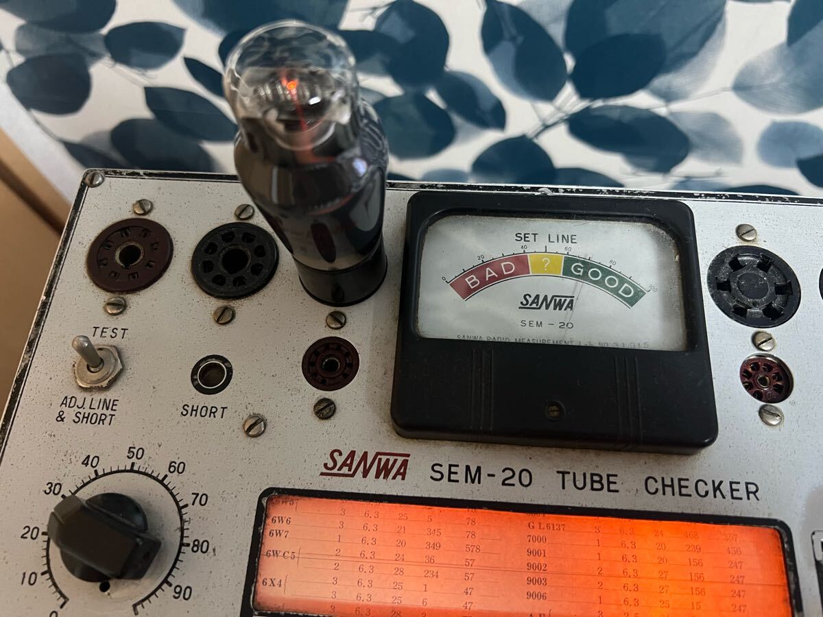 当方の試験機で同型式の未使用の真空管を試験すると80程度の値を示しますので基準として参考にしてください。