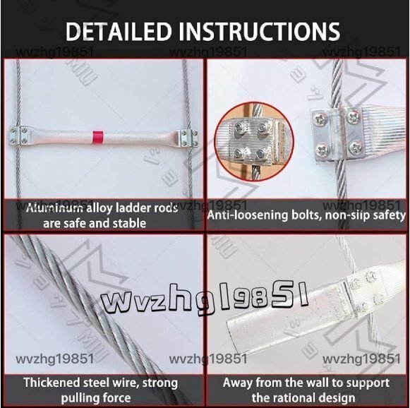 商品の説明特徴:はしごには、耐摩耗性、防虫性、滑り止めなどの特性があります。 無制限の長さ、柔らかさ、便利な輸送、軽量、コンパクトな構造、簡単に保管できるという特徴があります。用途:緊急非常避難、登山、救命、避難、樹木作業、キャニオンラフティング、ブランコ