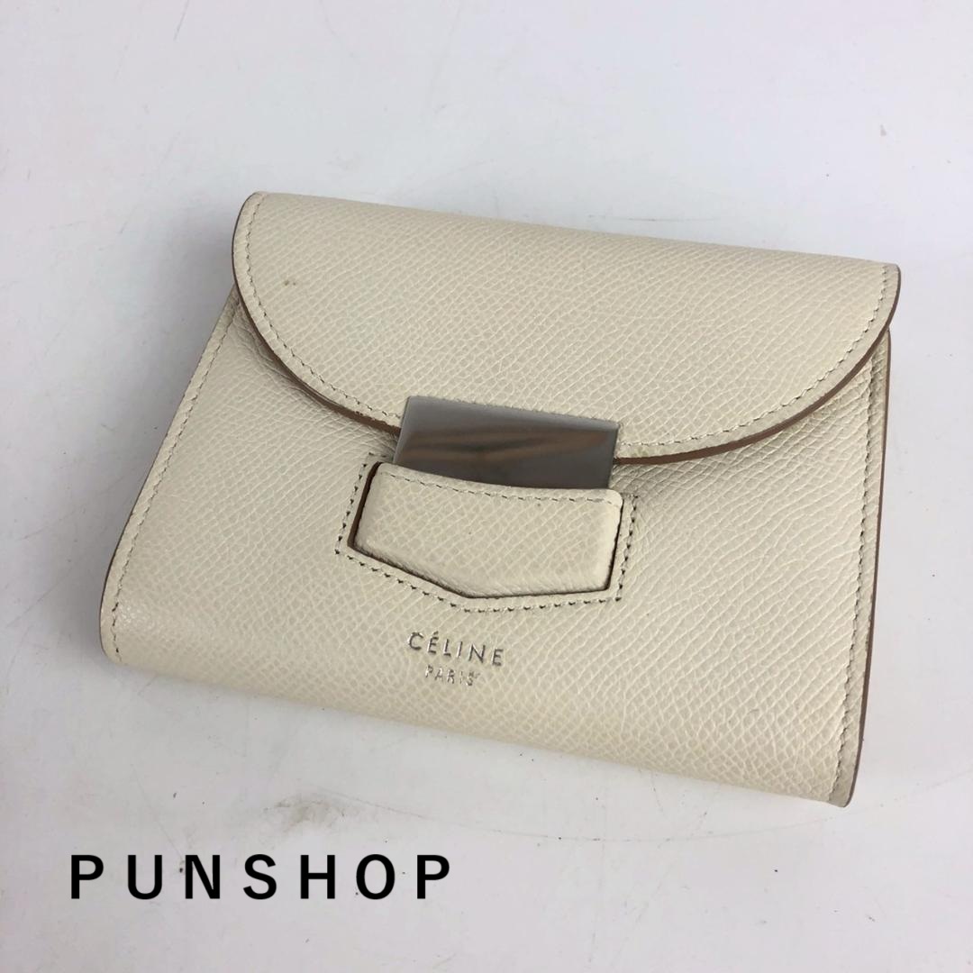 こちらは CELINE セリーヌ レザー 二つ折り 財布 ホワイト レディース ブランド になります。
