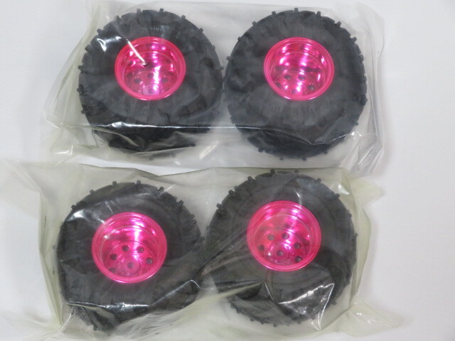 代引き可能! イベント限定 Hダンプ タイヤ/ホイル付(LR×1 ピンクメッキ)×2 GF-01 ホイール タイヤ 1台分(4個) タミヤ