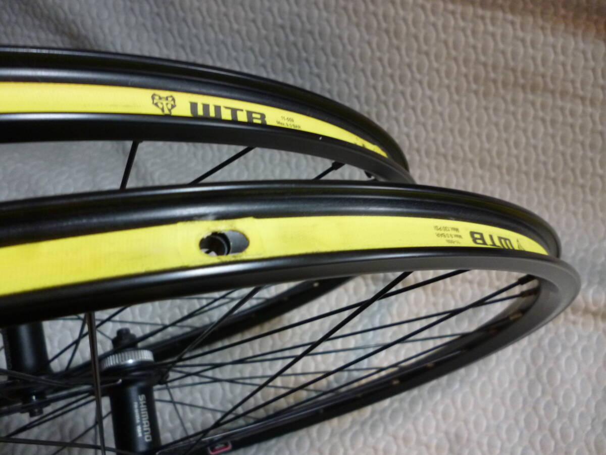 ◆ハブはシマノ、米式、ディスクローターセンターロック、ロードなら8S~10S、MTBなら8S~12S、エンド幅フロント100mmリア135mm、クイックリリース、リムハイト17.5mm、リム幅23.2mm、フリーボディ綺麗、フロント878g、リア1060g。写真では分かりにくいですが、飛び石程度の小傷が目立たない程度で少しあります。街乗り使用で、前後ともリムにガリ傷やヘコミや変形はありません。