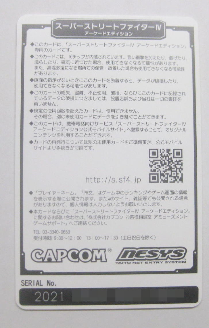 カプコン CAPCOM スーパーストリートファイターIVアーケードエディション NESYSカード 1枚 ②