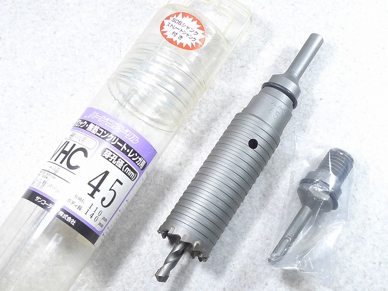 サンコーテクノ ハードコアドリルビット ブロック・無筋コンクリート・レンガ用 VHCタイプ 穿孔径45mm シャンク・ボディ 切削工具 建設工具 穴あけ