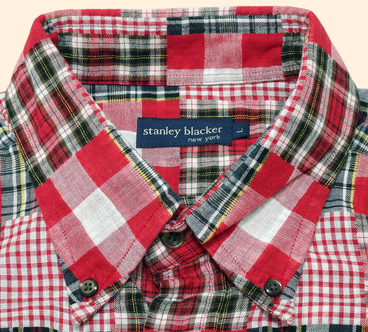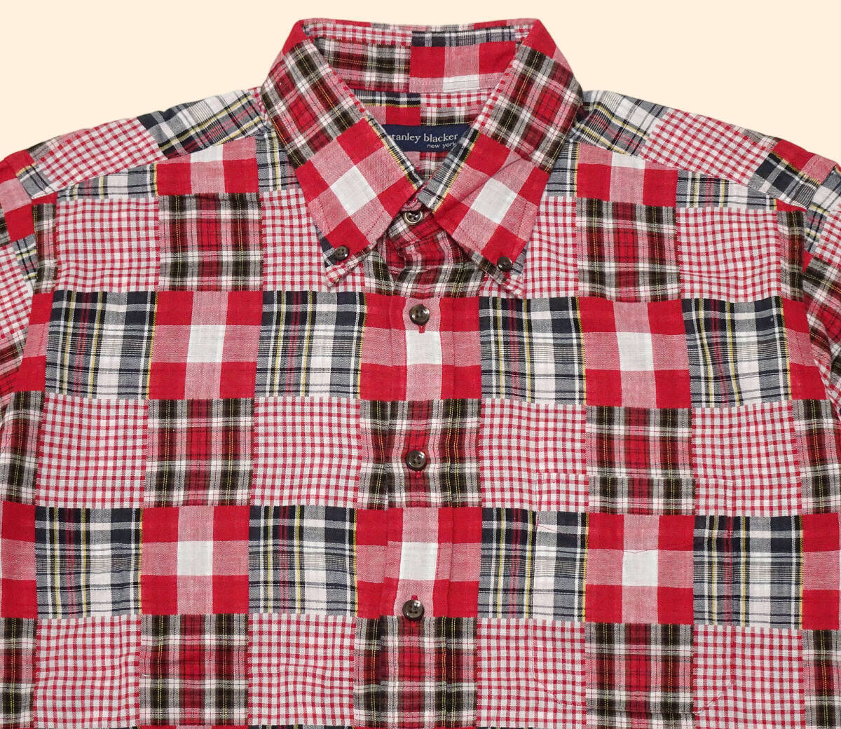 stanley blacker(スタンリー ブラッカー)/コットン100%/パッチワーク調/ボタンダウンシャツ/L