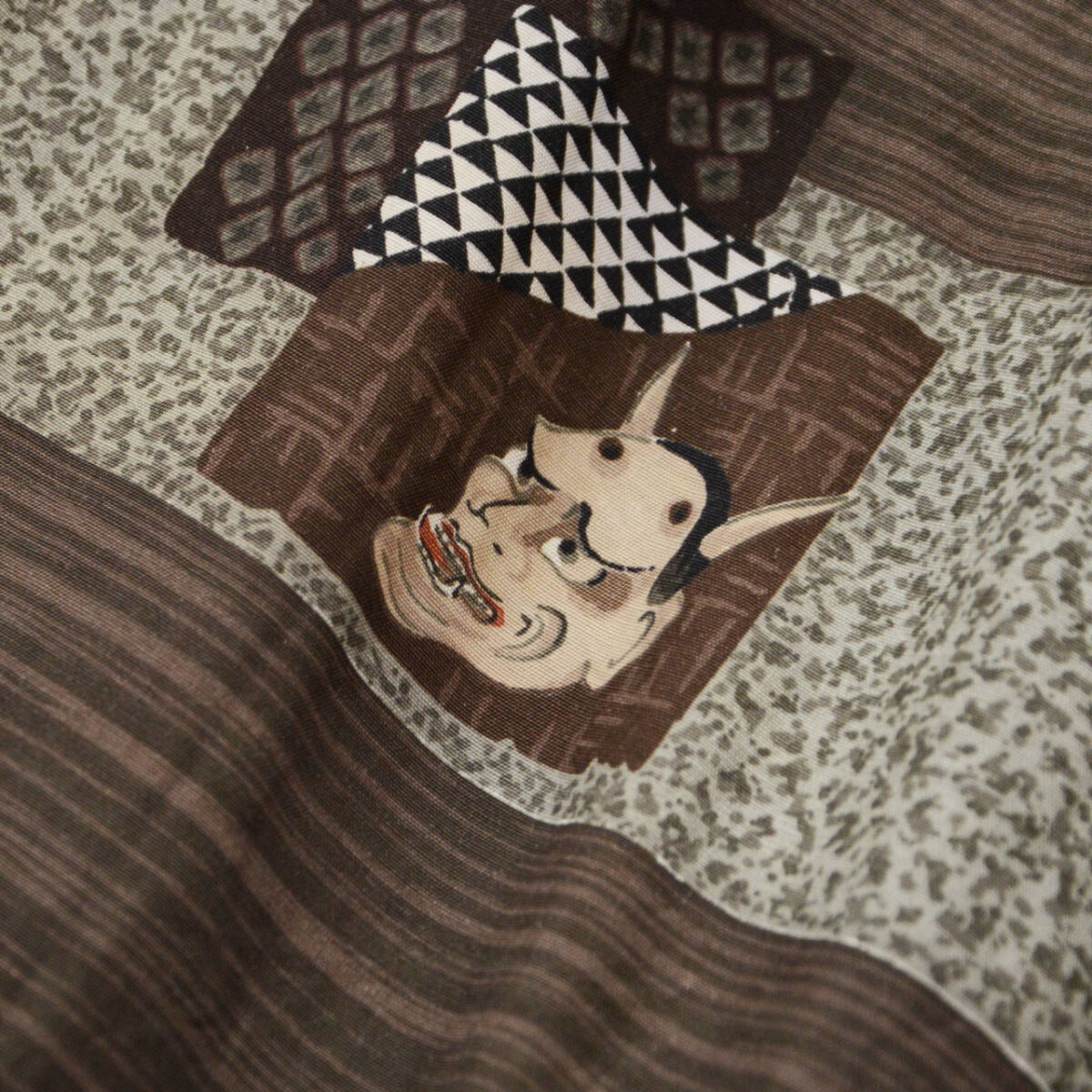 1970年代ジャパンヴィンテージ 般若・翁・おかめ柄 和装長着(リメイクにも最適)