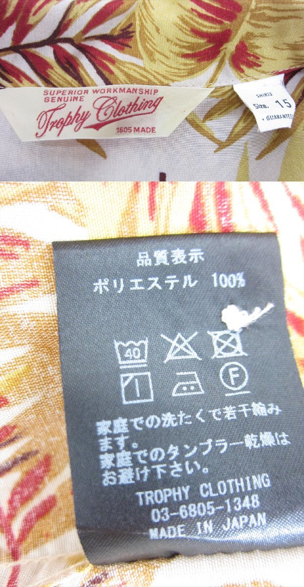 TROPHY CLOTHING トロフィークロージング DUKE HAWAIIAN L/S SHIRT SIZE:15 メンズ 衣類 □UF4405 | |||||||