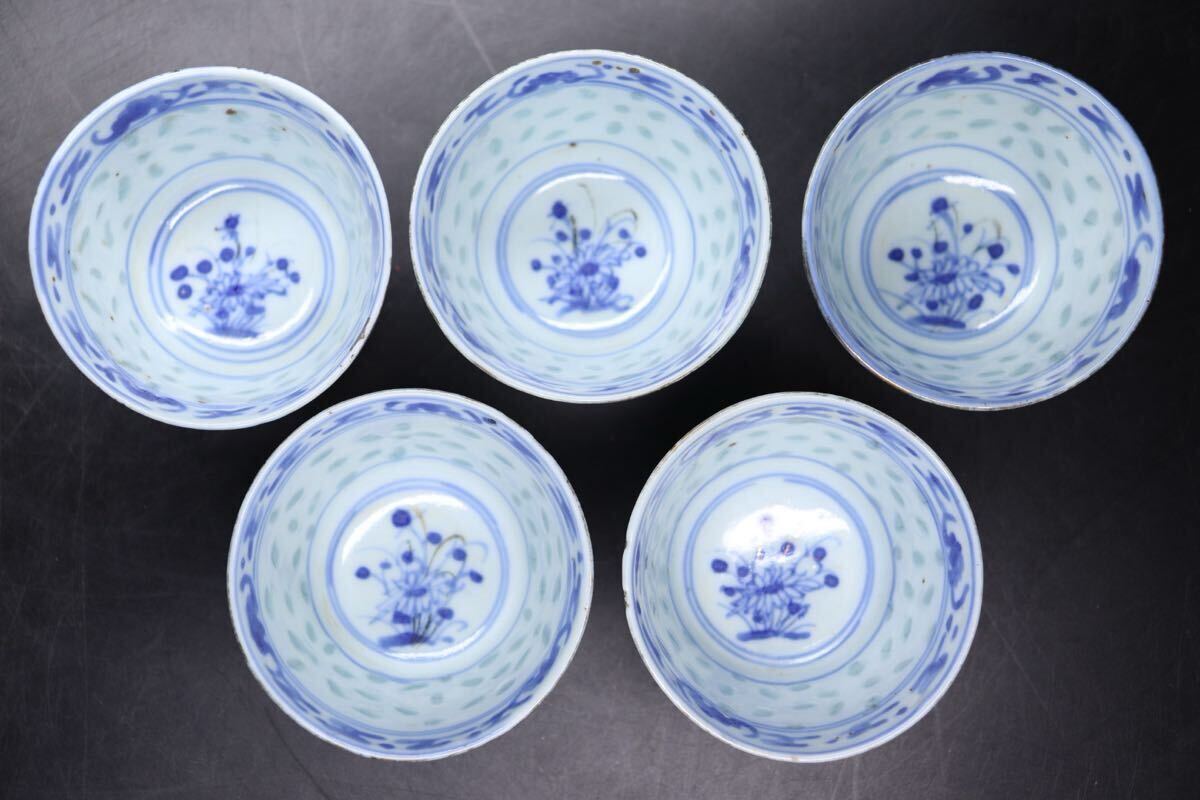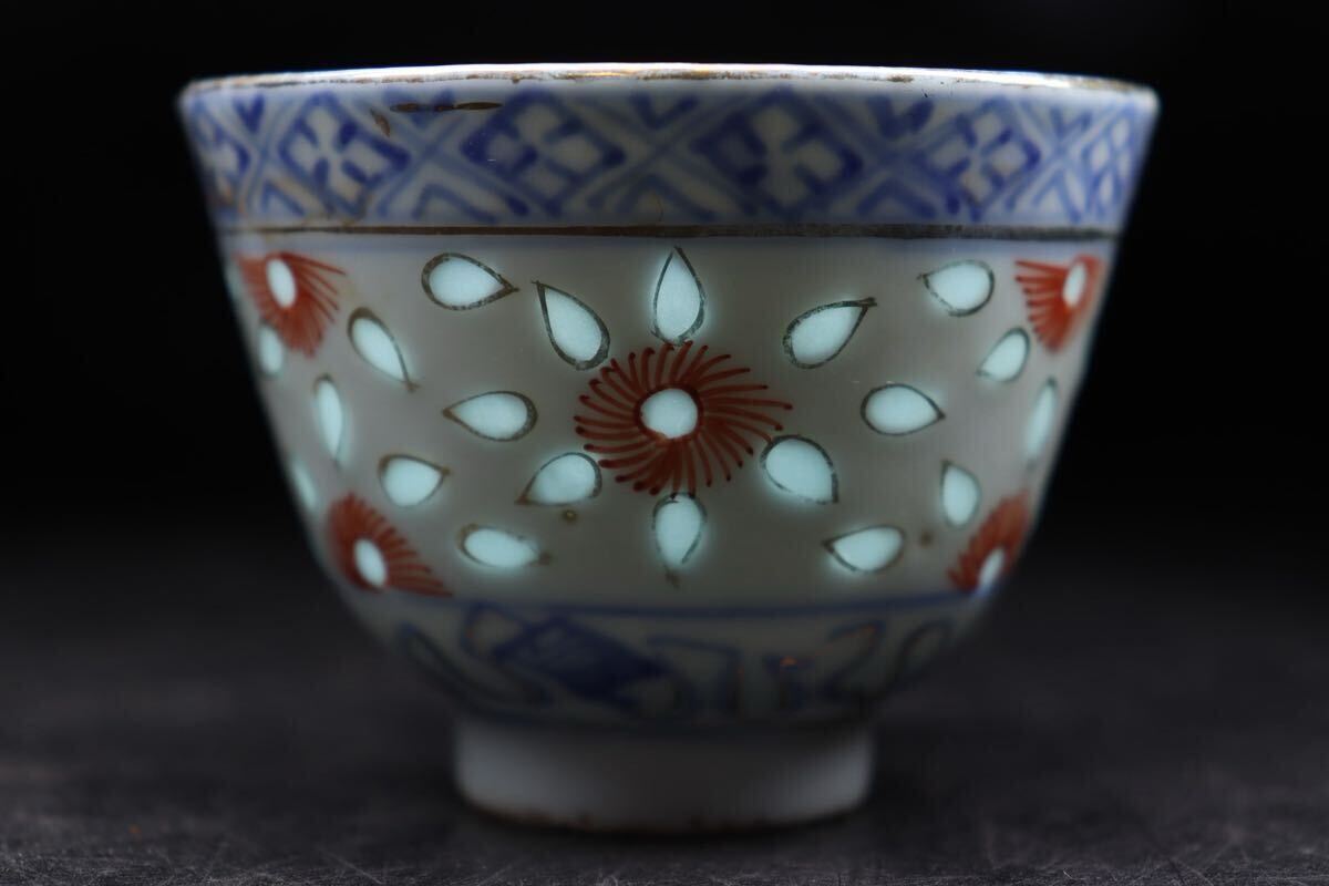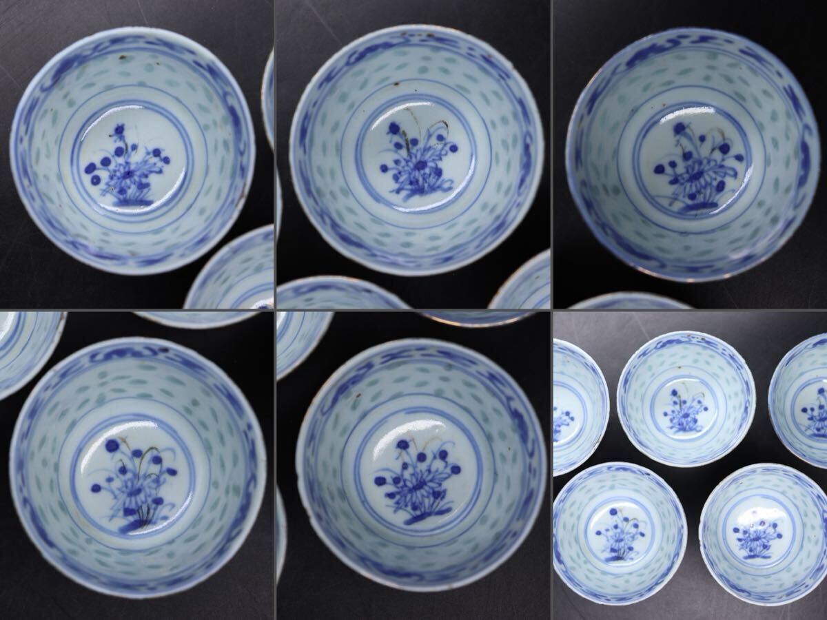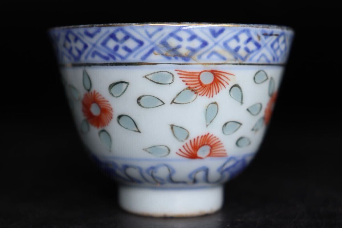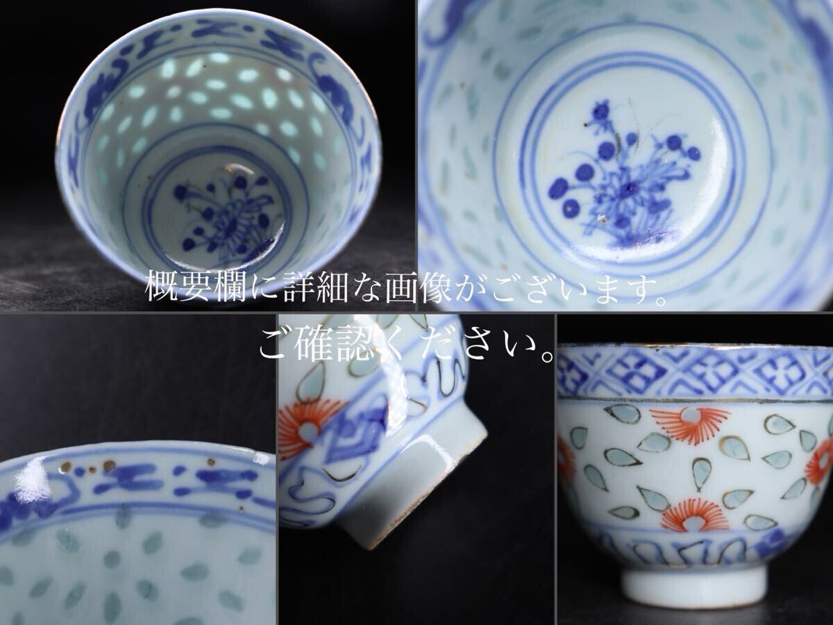 | 康熙年製 銘 蛍手 色絵 草花紋 煎茶碗 五客 / 清 康熙 中国美術 茶器 煎茶道具 .G1587 |