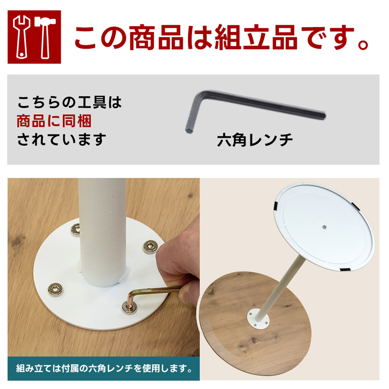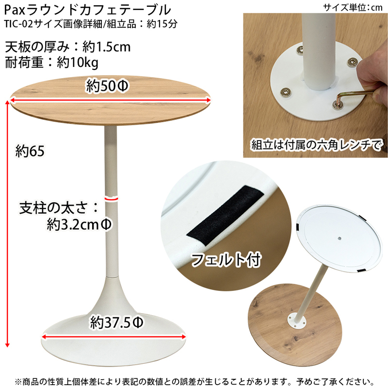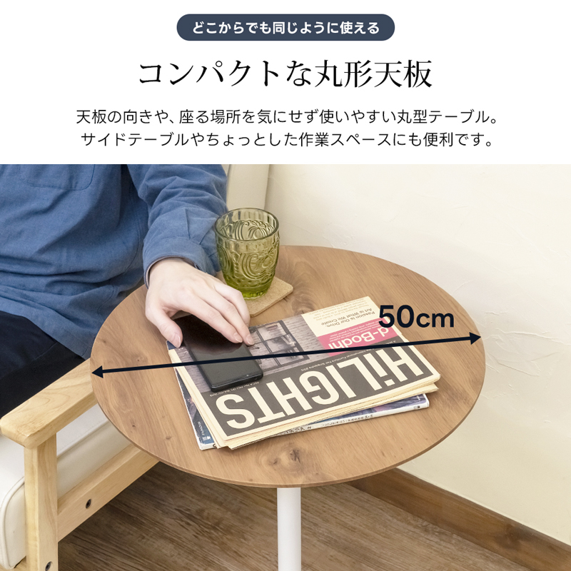 | サイズ | (W)幅50×(D)奥行50×(H)高65cm 天板サイズ:約50φ×厚さ約1.5cm 耐荷重:約10kg |