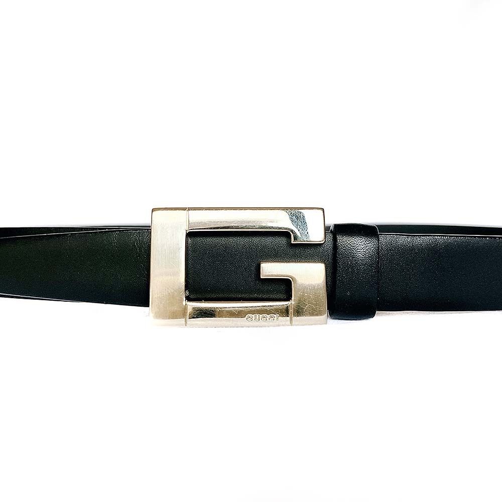 GUCCI グッチ Gバックル レザー 本革 ベルト ブラック 黒 ゴールド size 70/28 レディース イタリア製