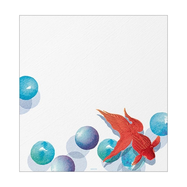【即決】★便箋&封筒セット 伊予和紙★金魚 ビー玉 夏柄 金箔押し 和風 ミドリ 便箋16枚入 封筒6枚入// 87171-006 87172-006