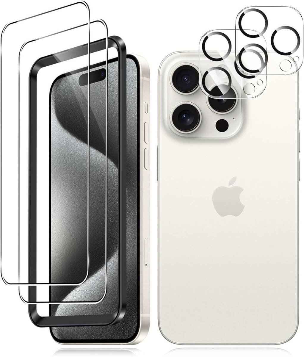 【ガラスフィルム&カメラフィルム】iPhone15 Pro 用 強化ガラス保護フィルム2枚とレンズフィルム2枚セットで、スマホを全面にしっかりと保護します。