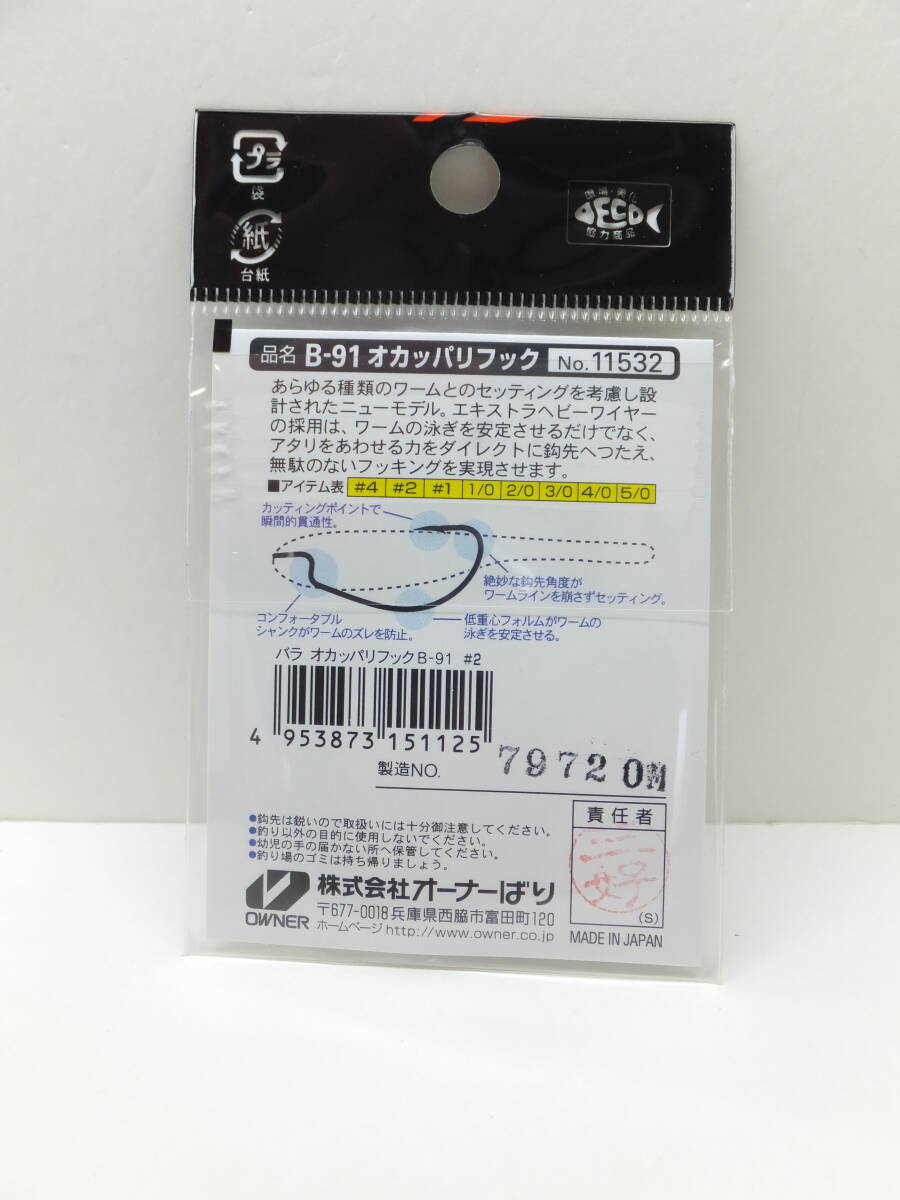 セール◆カルティバ◆バス◆ オカッパリフック B-91 #2 5個セット◆定価¥1,925(税込み)