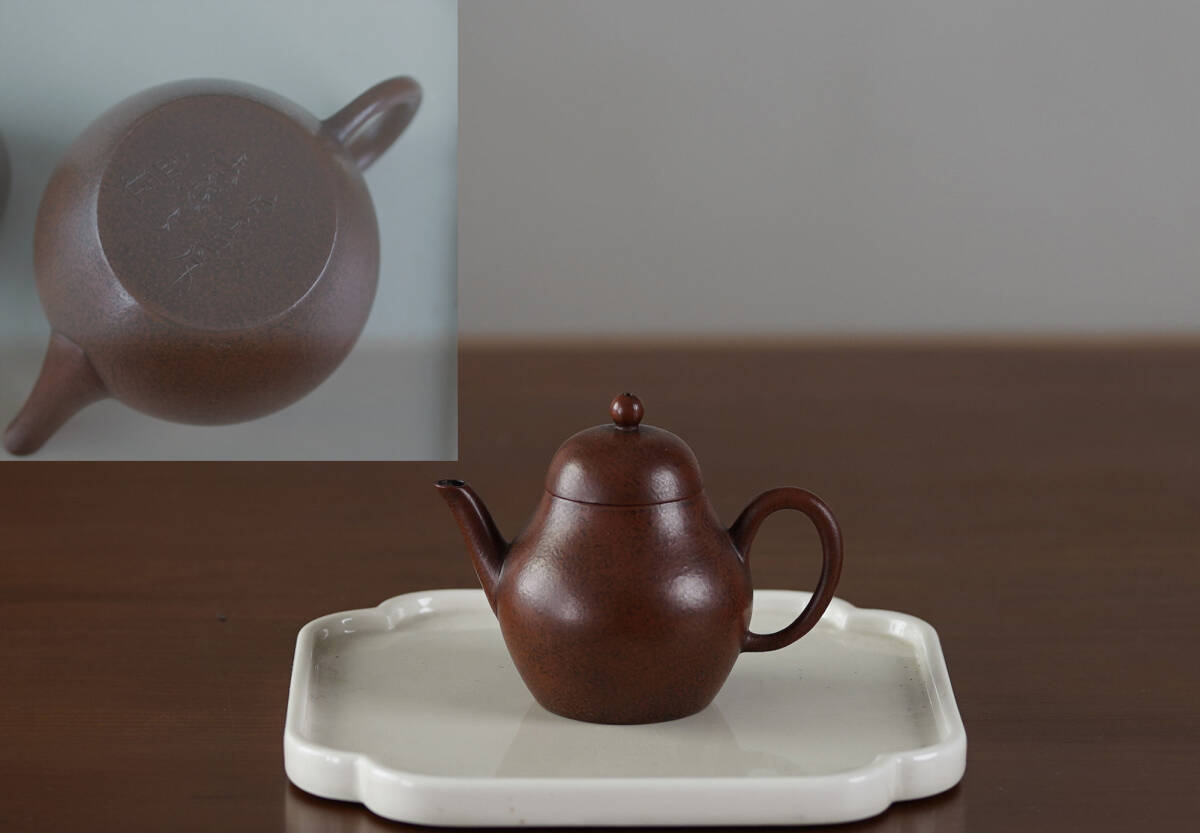 唐物 朱泥 孟臣製 漢詩刻 梨形 急須 単孔口 紫砂壺 時代品 煎茶道具 美術品