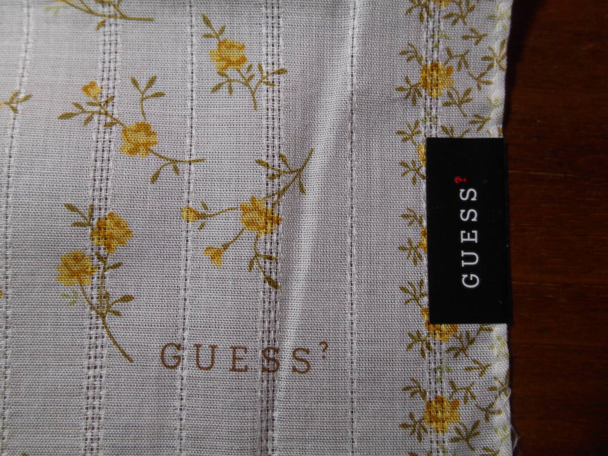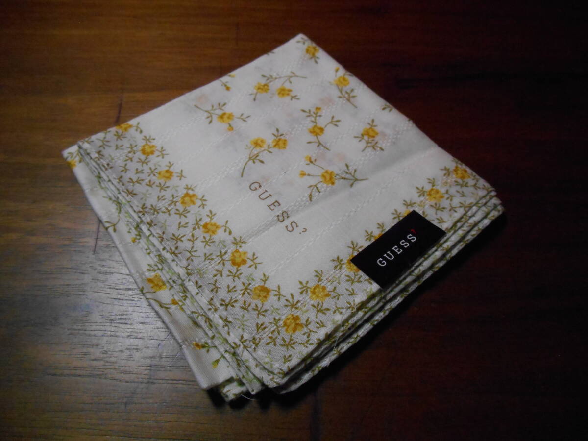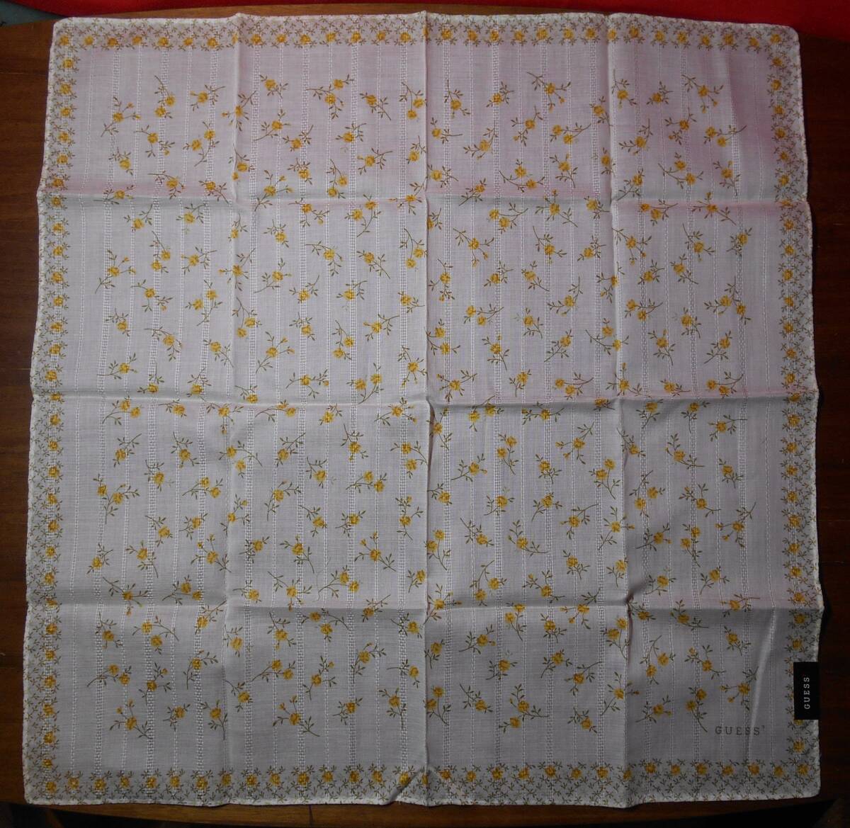 GUESS ゲス ハンカチ 花模様 薄黄/クリーム色系 綿100% 川辺 保管品