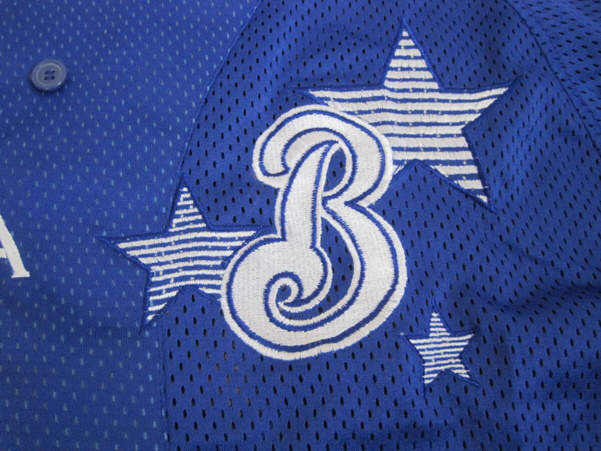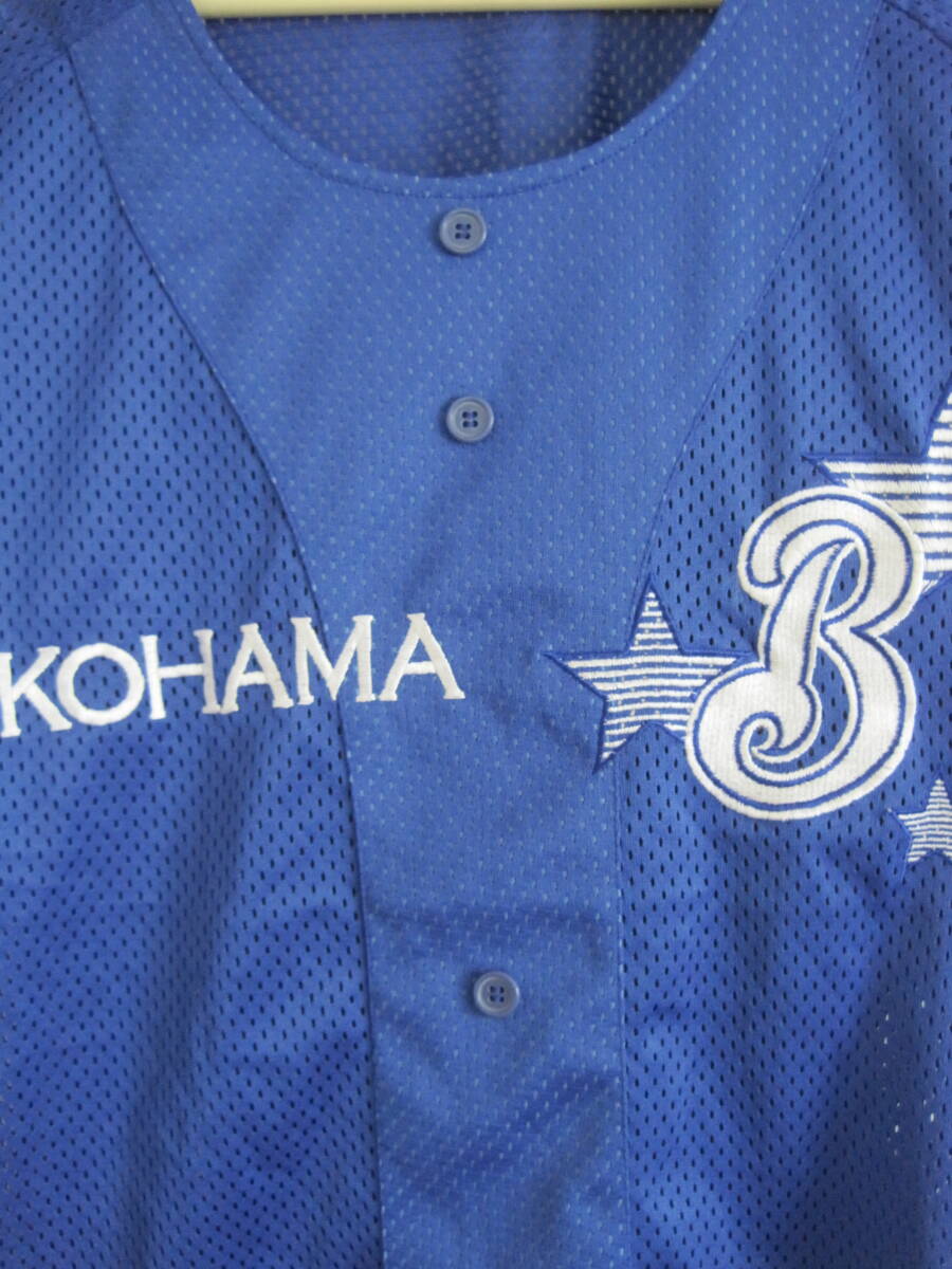 レア 美品 横浜ベイスターズ 初期 ビジター ユニフォームになります。特に目立つ傷、汚れはありません。カラーはブルー、サイズはF、ポリエステル100%です。肩幅ラグランの為不明、袖丈40cm(肩まで)、身幅53cm、後ろ着丈75cmです。素人の採寸ですので若干の誤差、商品状態はご了承ください。 落札後は、ノークレーム、ノーリターン、ノーキャンセルでお願いします。発送方法はレターパックです。ほかにも色々出品していますので良かったらご覧ください。