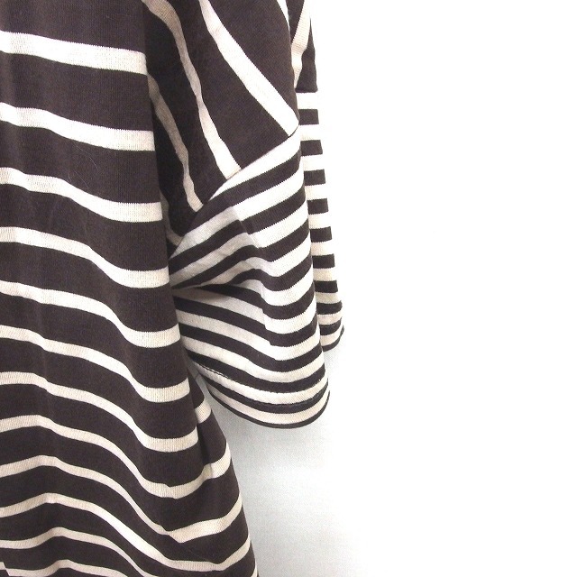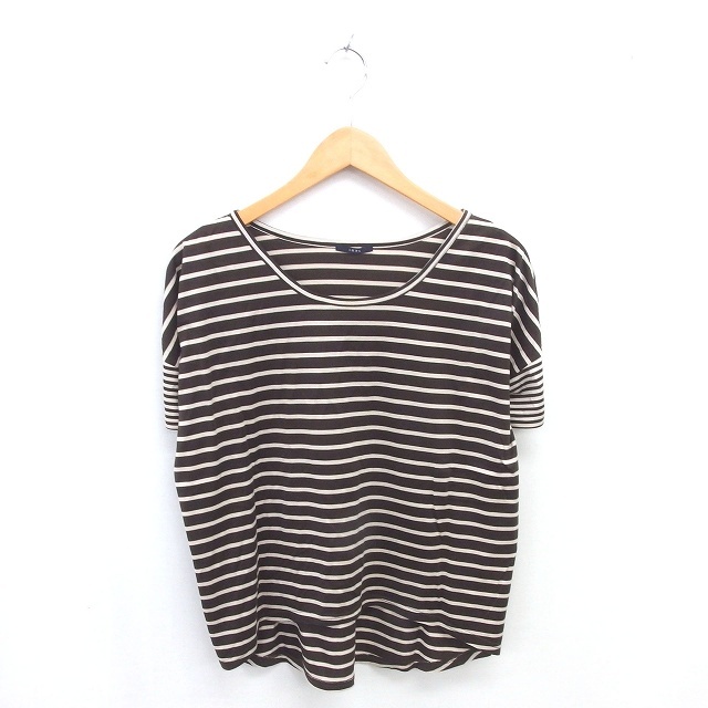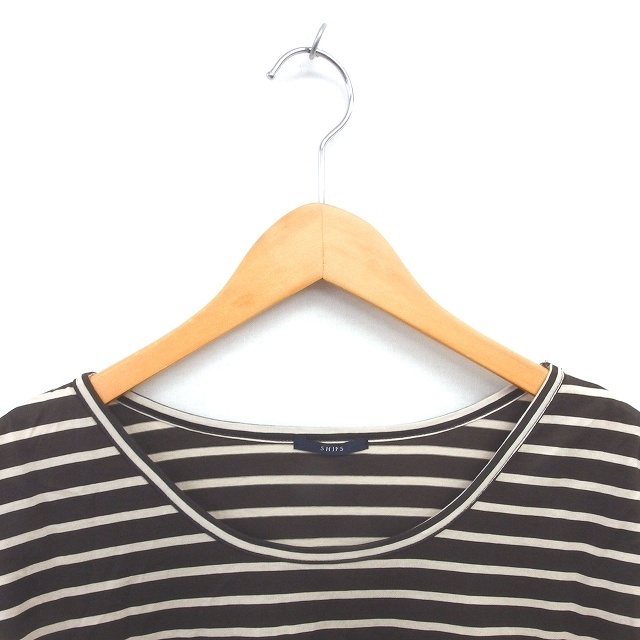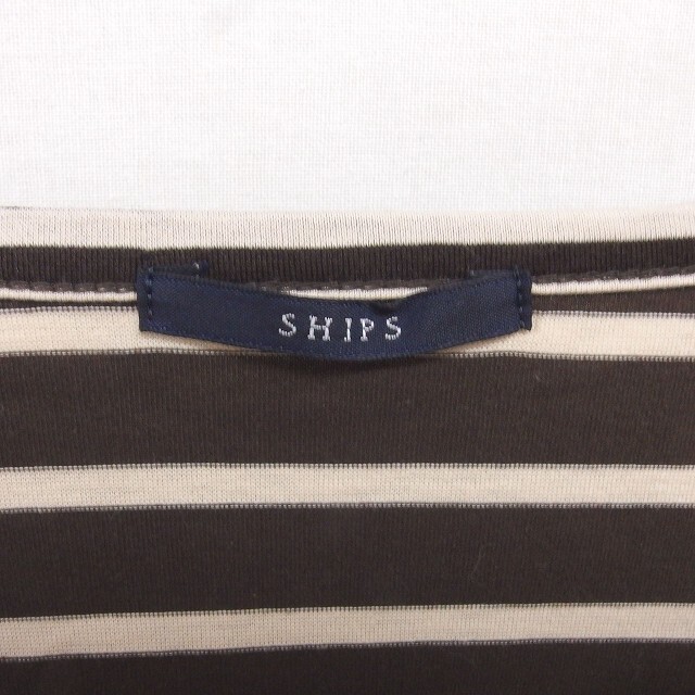 シップス SHIPS カットソー Tシャツ ボーダー ボートネック 綿 コットン 薄手 半袖 茶 薄茶 ブラウン ベージュ /TT40 レディース