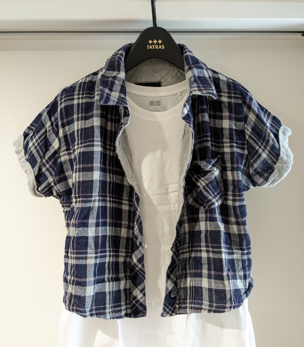 ⇒平置きで、肩幅37cm、身幅51cm、着丈47.5cm、袖丈14.5cm