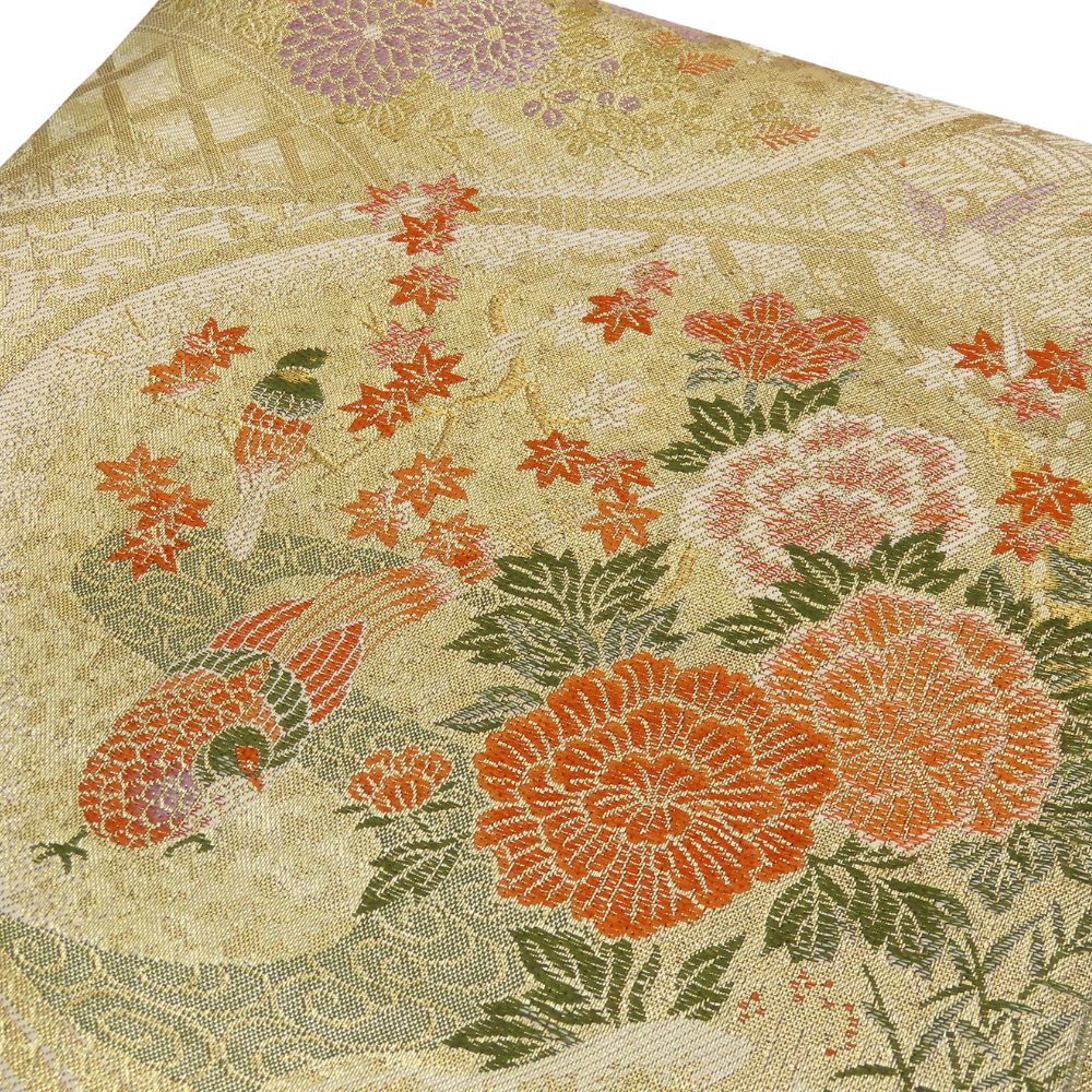 | サイズ | サイズ 全長:約 420cm 幅:約 30cm 帯の柄1:鳥 帯の柄2:花 重量:約800g |