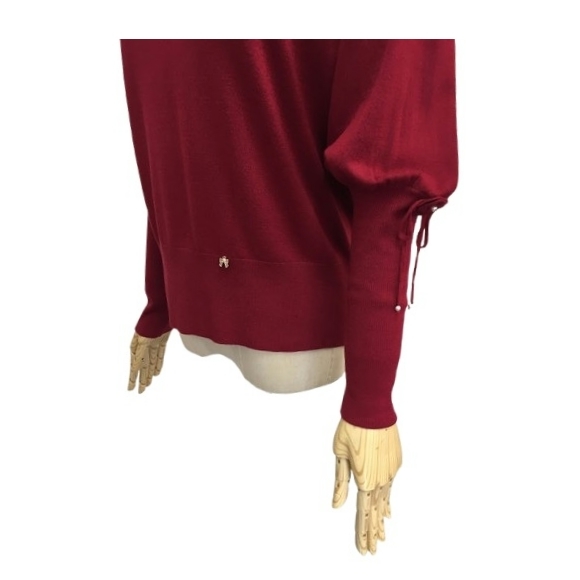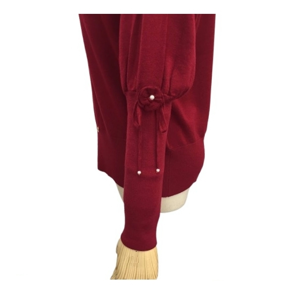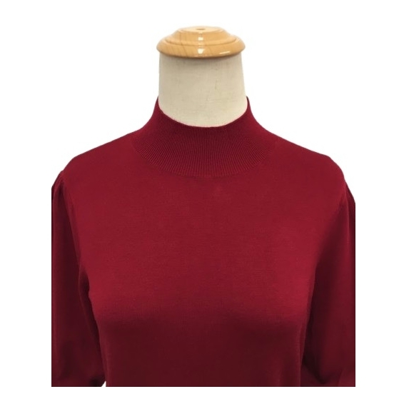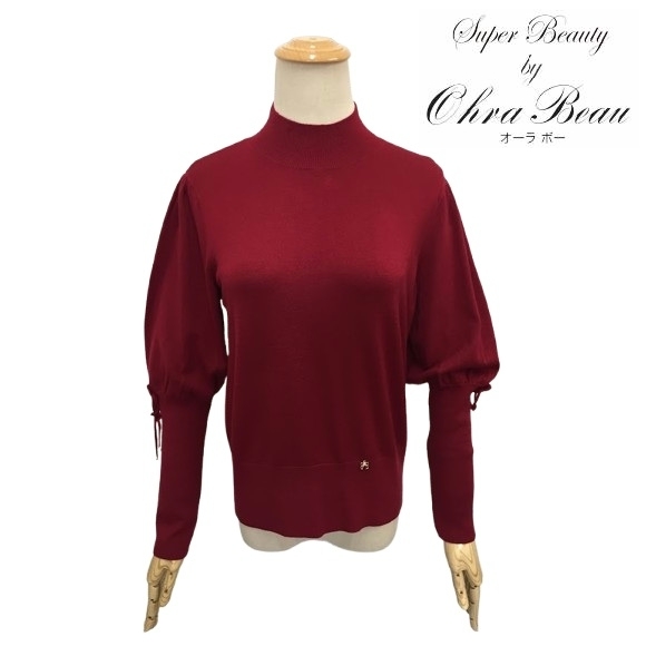 スーパービューティー 40 ハイネックセーター 花 リボンモチーフ 2421019 レッド M 2024年秋冬 オーラボー 大人かわいい服 キレイメ