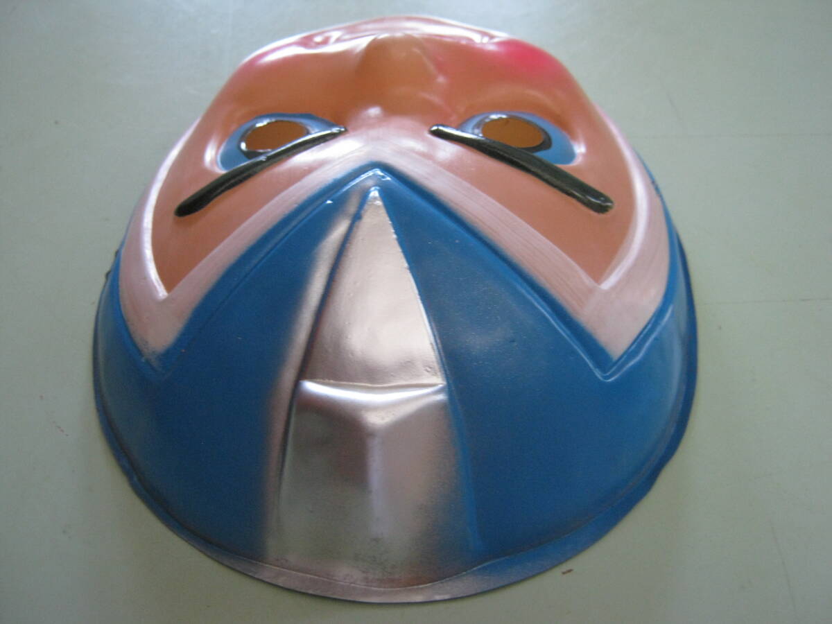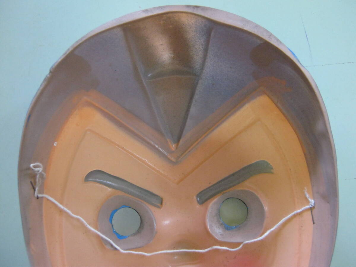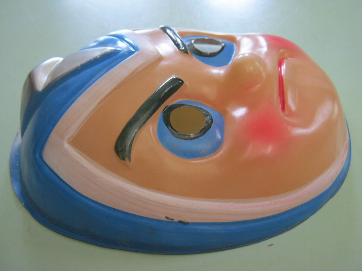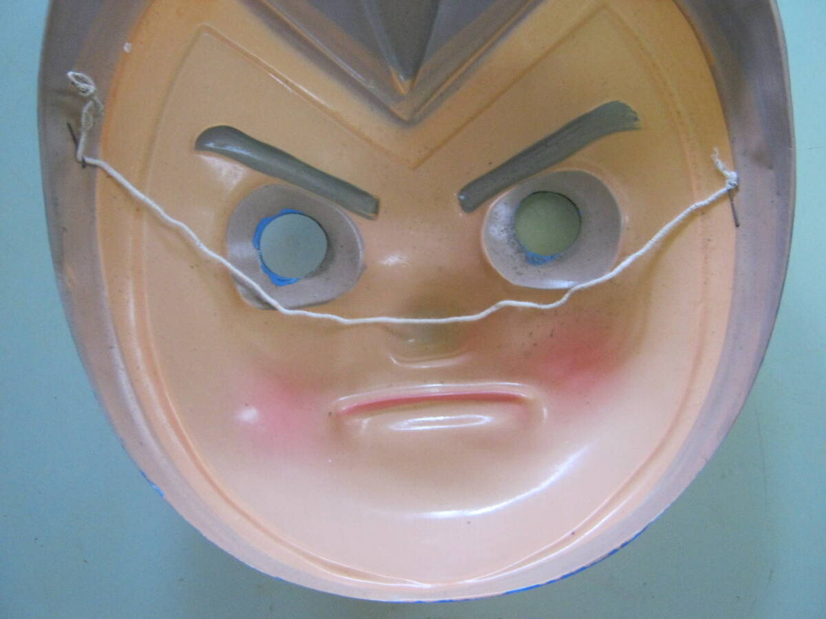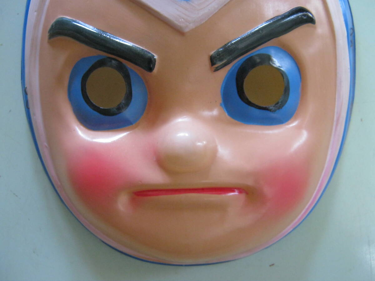 当時物です。メーカー不明です。本体のみです。未使用品です。汚れ、キズがあります。破損はありません。お面の後に付いているゴム紐が経年劣化で伸びています。サイズは約17㎝×14.2㎝×4㎝位です。記載されているサイズは素人採寸の為 参考サイズです。以上判るだけ記載しましたが写真、質問等で判断お願い致します。落札後はノークレーム、ノーリターンでお願い致します。発送はゆうパック(元払い)のみです。配達日、配達時間帯の指定ができます。