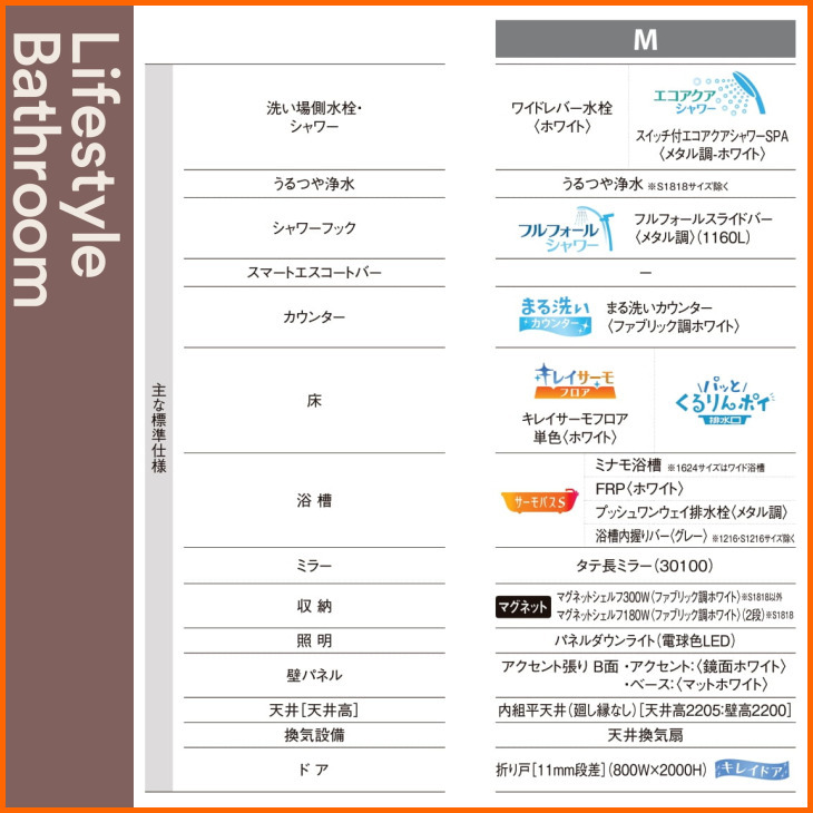 〜リクシル リデア〜 ★入浴スタイルに合わせて、選べる浴槽形状 ミナモ浴槽、ミナモワイド浴槽 他 ★パッとゴミがまとまって、カンタンにポイッ パッとくるりんポイ排水口 ★汚れにくいスッキリデザイン キレイドア ★広がりのあるやさしい光で、浴室空間全体を明るく、心地よく。 パネルダウンライト(LED) ※商品の詳細につきましてはメーカーHP・カタログでご確認願います。 ◆本タイプ以外の型・サイズもございます。 ◆ユニットバスの他、システムキッチン・洗面化粧台・トイレ等の 水廻り商品も取り扱っております。 ◆オプション等で別途お見積りが必要なケースのお問い合わせは、 TEL・FAX・メールにてお気軽にどうぞ! ◆メーカーの定価見積書からもお買い求め頂けます。 事前にご連絡の上、FAXまたはメールにてお送り下さい。 弊社価格の見積書を作成致します。 ◆サイズ違い等、ショップ上に掲載されていない商品をご希望の方は お問い合わせ下さい。 ⇒ クリックで”WEBカタログ”にリンクします |