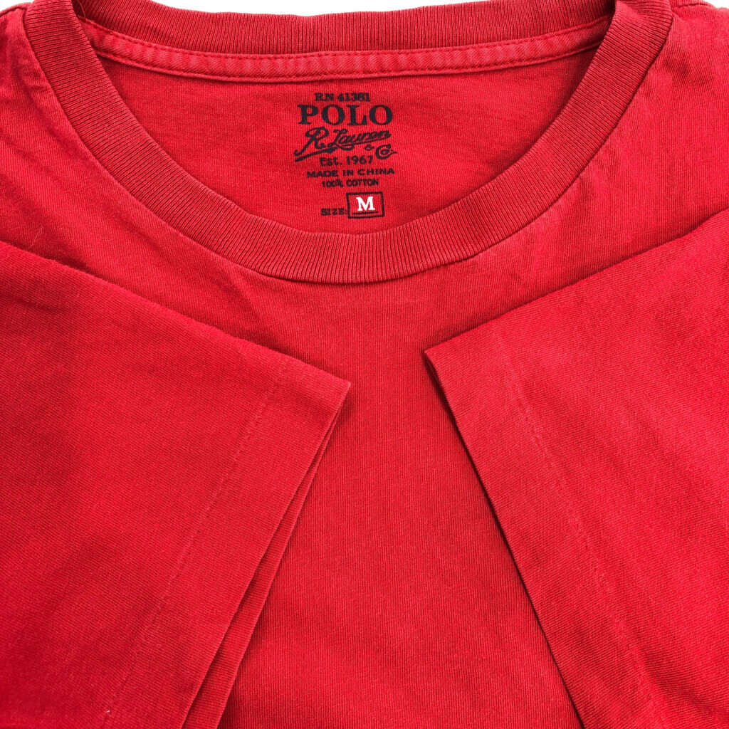 [商品管理番号] T4907 [ブランド] Polo by Ralph Lauren/ポロ ラルフローレン [サイズ] M [実寸サイズ] 肩幅:約51cm 着丈:約66cm 身幅:約56cm 袖丈:約19cm [主な素材] 表地 : コットン [色] レッド [仕様] 55203 [状態] 破れ:肩 特記事項:色褪せ | |||