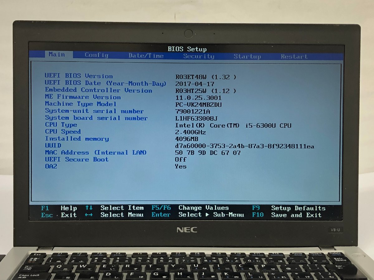 ジャンク/ NEC PC-VK24MBZDU Intel Core i5-6300U メモリ4.1GB ストレージ無し 【K15136】