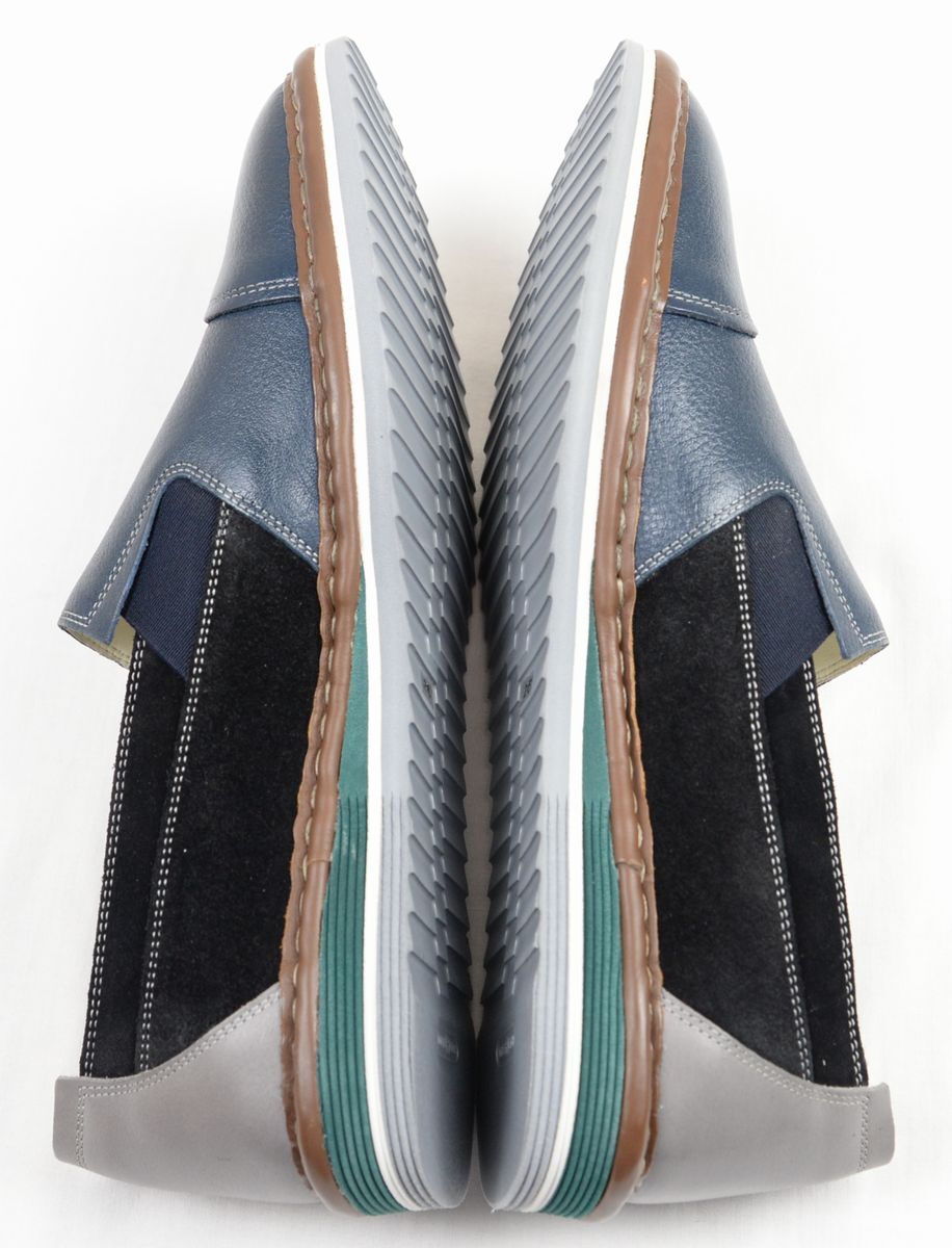 両サイドに着脱スムーズなゴムを入れ、異素材使いがデザインアクセントに仕上げられています。