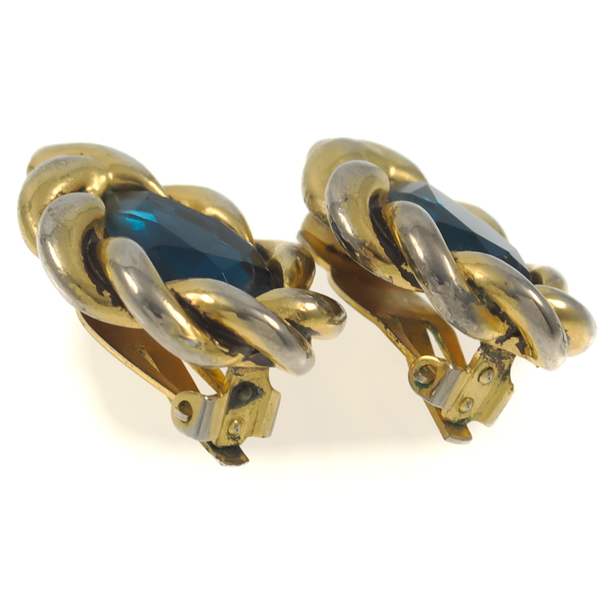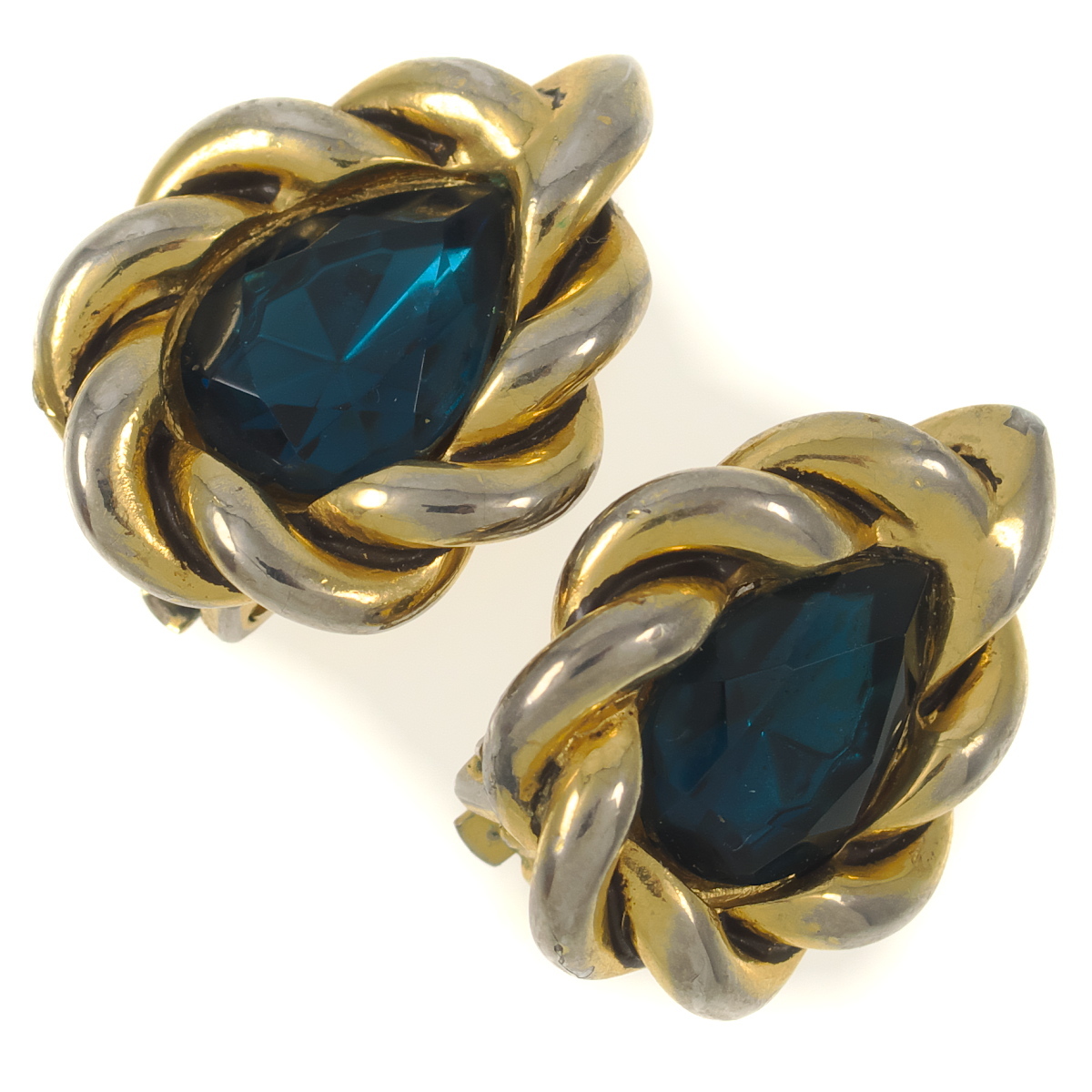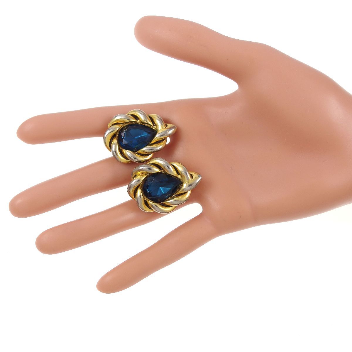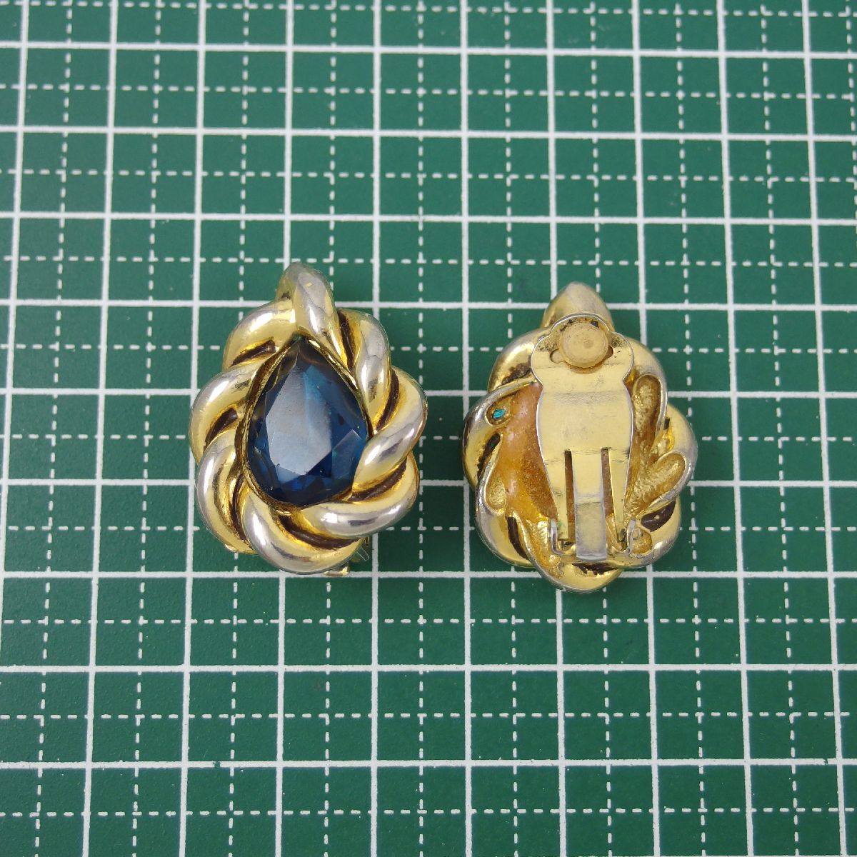 A10664◆【DIVA】◆ ドロップシェイプ ブルー系ラインストーン しずく ◆ ヴィンテージイヤリング ◆