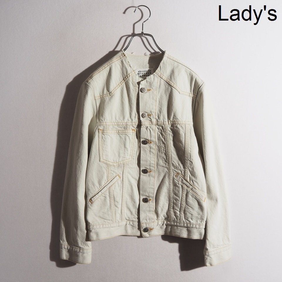P9925P▼Maison Margiela メゾンマルジェラ 1 10▼ 23SS 再構築 カットオフ ノーカラー デニムジャケット ホワイト 36 シーズンレス rb mks