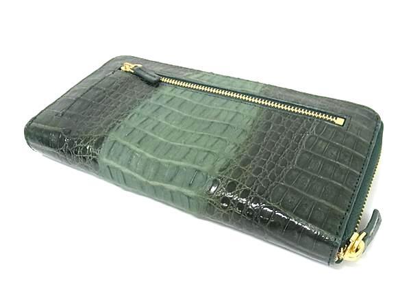 ■極上■本物■新品■未使用■ クロコダイル カイマン ラウンドファスナー 長財布 ウォレット 小銭入れ 札入れ グリーン系 BJ8940