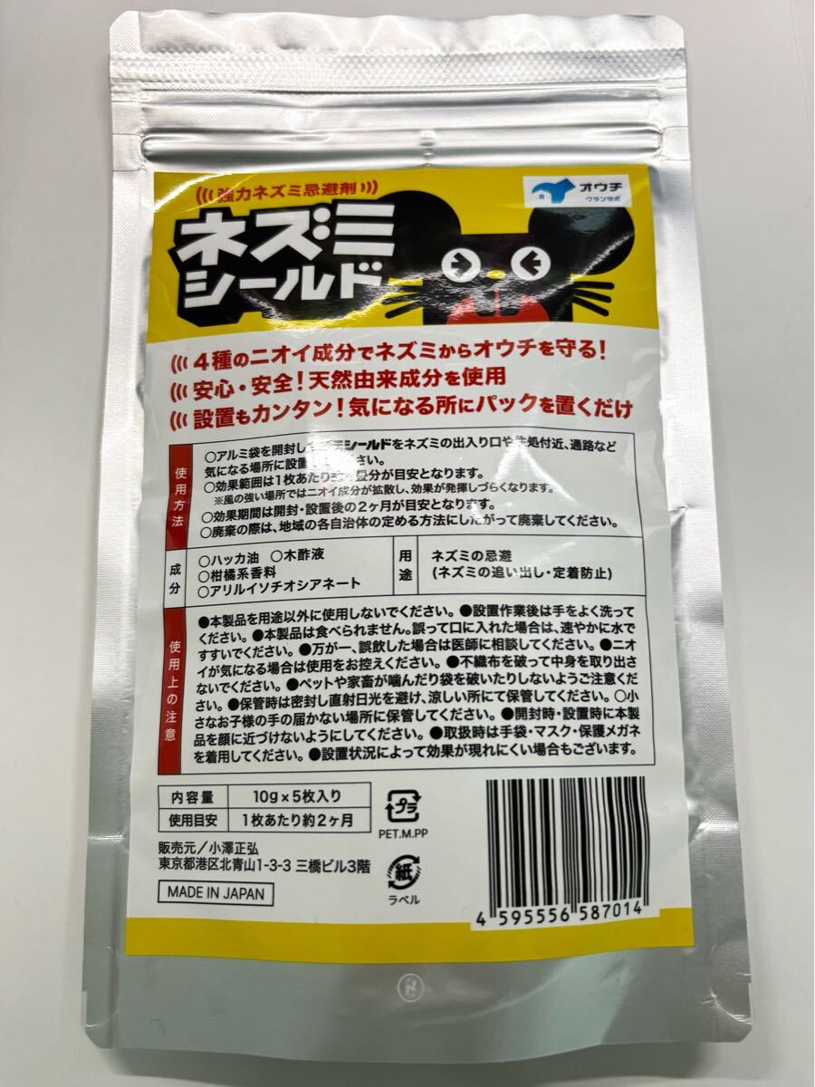 ネズミシールド ネズミ 忌避剤 ねずみよけ 10g×5枚入り 4種のニオイでシャットアウト 鼠 駆除 オウチ