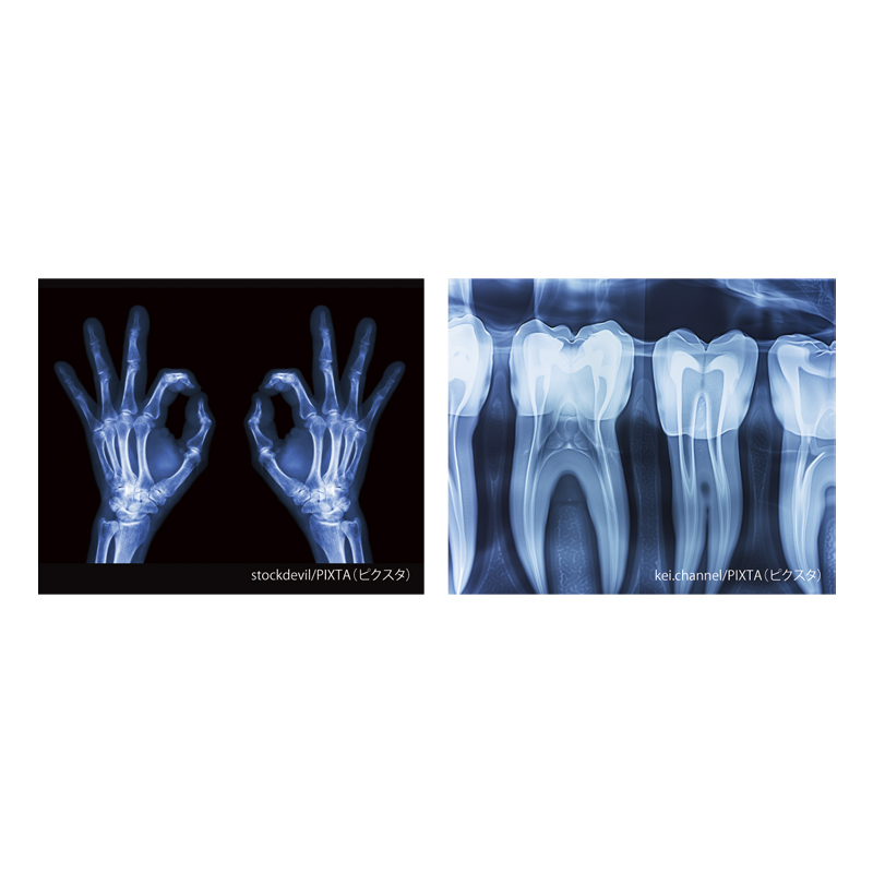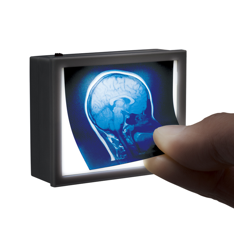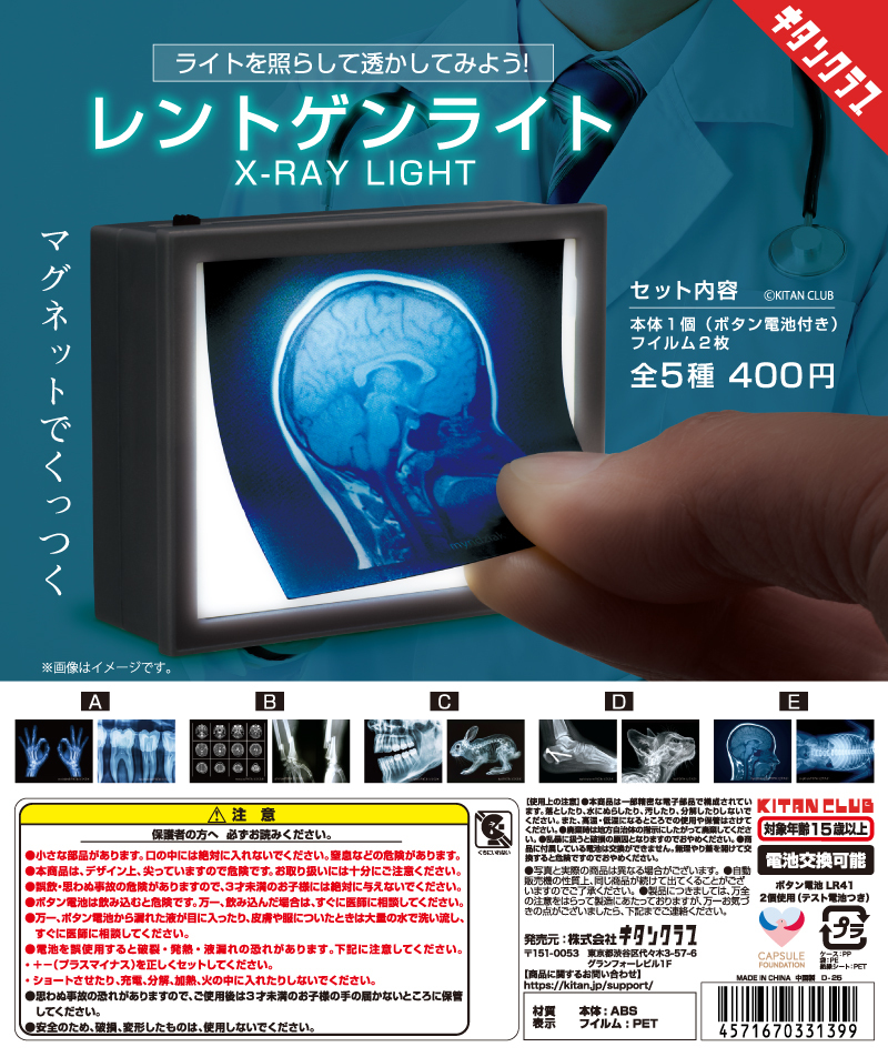 発光ギミックを搭載した本体のライトをつけて、付属の“ミニレントゲンフィルム”をかざせば、気分はまるで医療のプロフェッショナル。