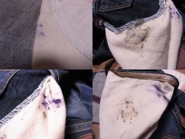 ・使用感があり、ヒップポケットステッチほつれ、右ポケット中にガムの様なものの付着、インクの様なシミがあります。画像にてご確認ください。