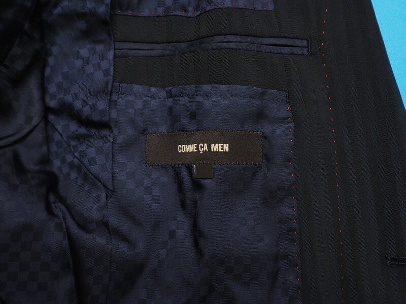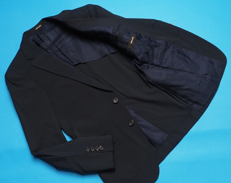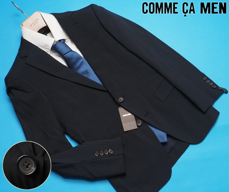 新品定価5万円 COMME CA MEN コムサメン 春秋 水牛釦 ポリストレッチ シャドーストライプ ジャケットSS紺(09) 04GS07