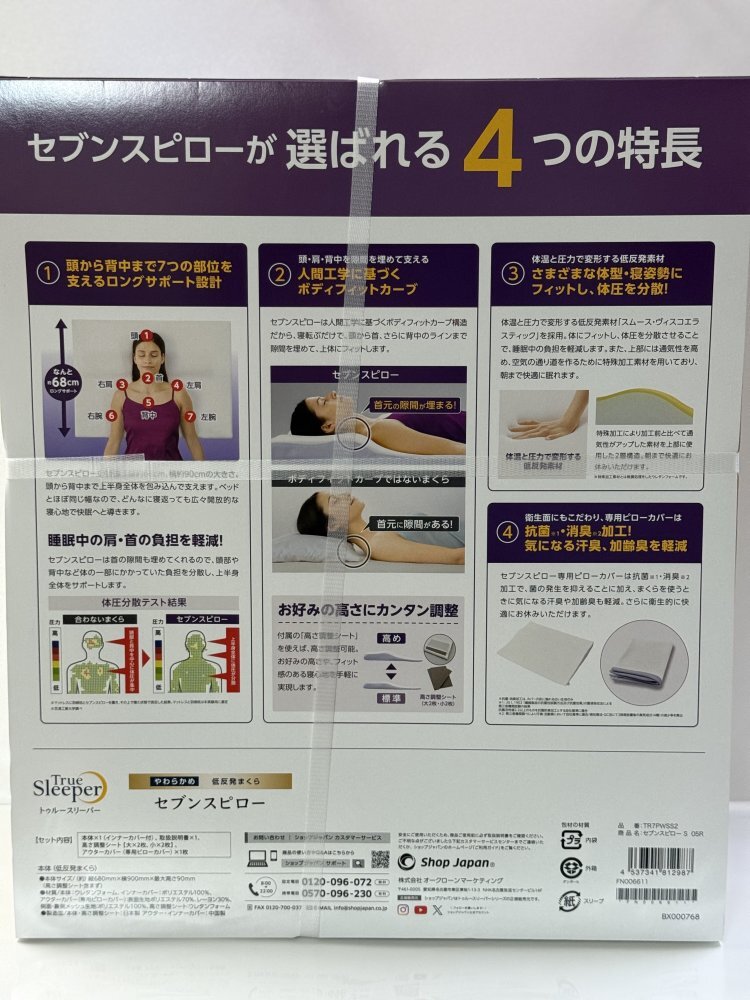 「商品情報」◆頭から背中まで七つの部位を支え睡眠時の肩や首の負担を軽減することができます。◆人間工学に基づくボディフィットカーブで隙間を埋めて状態にフィットします。◆付属の高さ調整シートを使用してお好みの高さに調整が可能です。 セット内容:本体×1(インナーカバー付)アウターカバー×1高さ調整シート×1セット【商品仕様】サイズ:約 縦680mm×横900mm×最大高さ90mm ※高さ調整シート含まず重量:約 1.4kg ※ 高さ調整シート含まず材質:●本体:ウレタンフォーム●インナーカバー:ポリエステル100%、●アウターカバー:表側生地 : ポリエステル70%レーヨン30%側面・裏側メッシュ生地 : ポリエステル100%、●高さ調整シート:ウレタンフォーム生産国:本体・高さ調整シート:日本製、アウター・インナーカバー:中国製「主な仕様」頭から背中まで支えるデザイン 横幅約90cmのワイドサイズ 低反発素材を使用 カバーは抗菌・消臭加工 高さ調整シートが付属