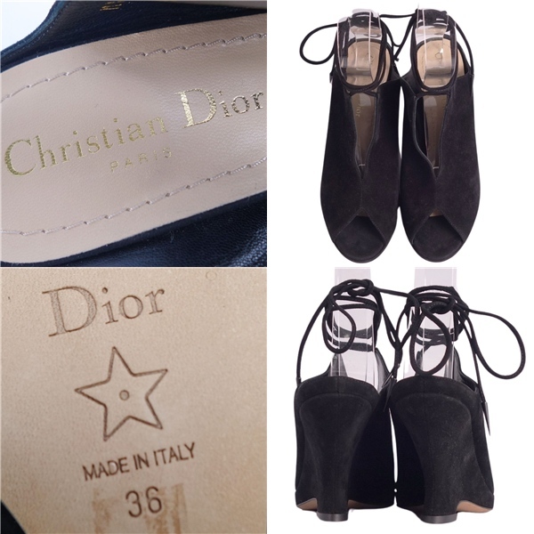 | 美品 クリスチャンディオール Christian Dior サンダル ストラップ スウェードレザー 靴 レディース 36(23cm) ブラック |