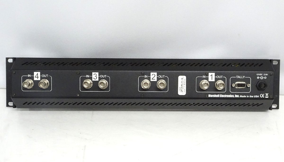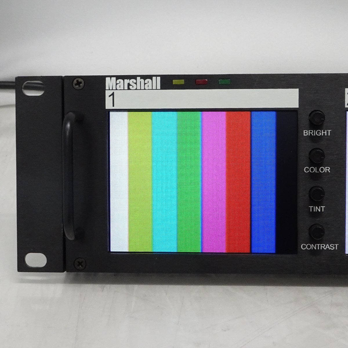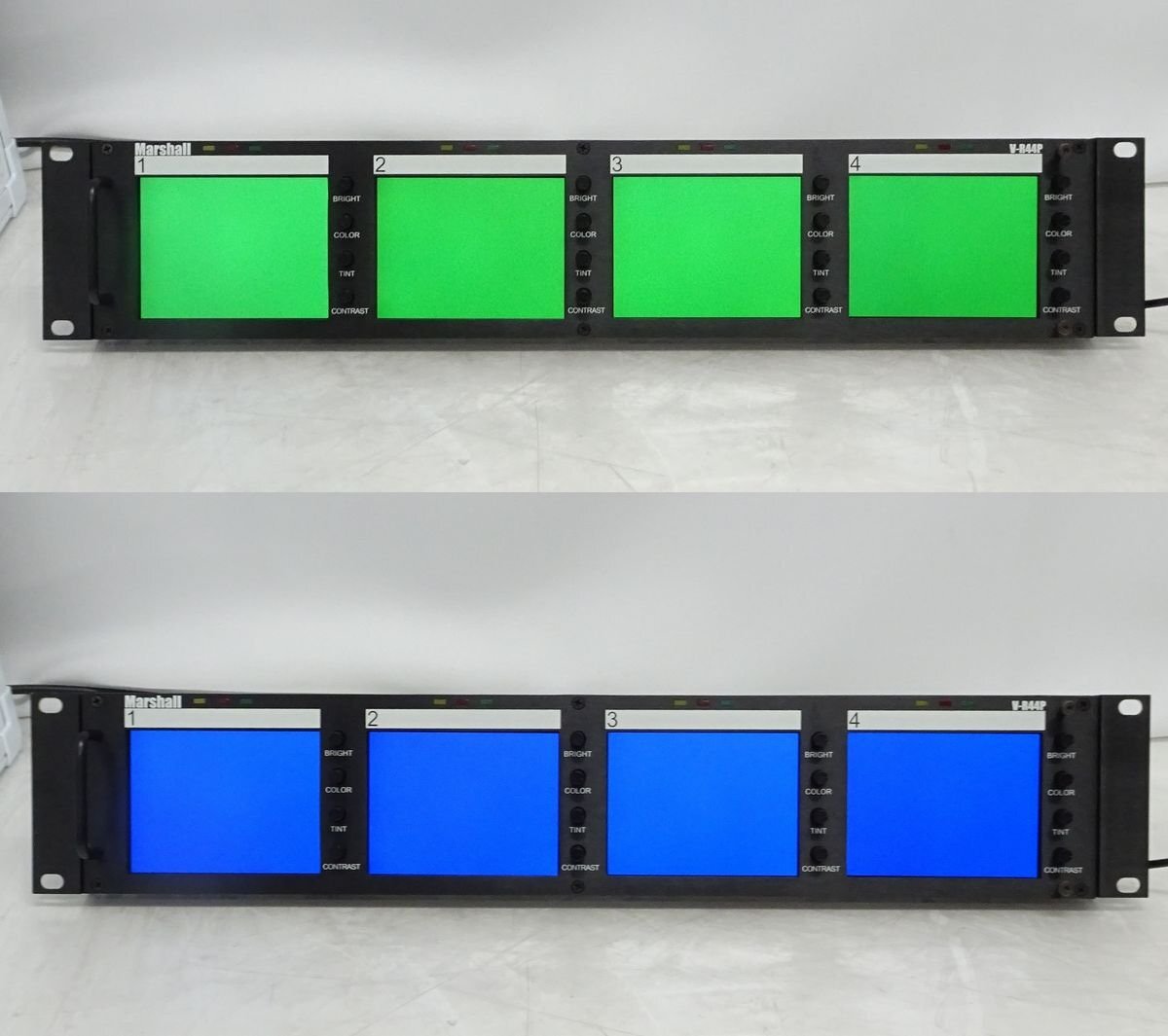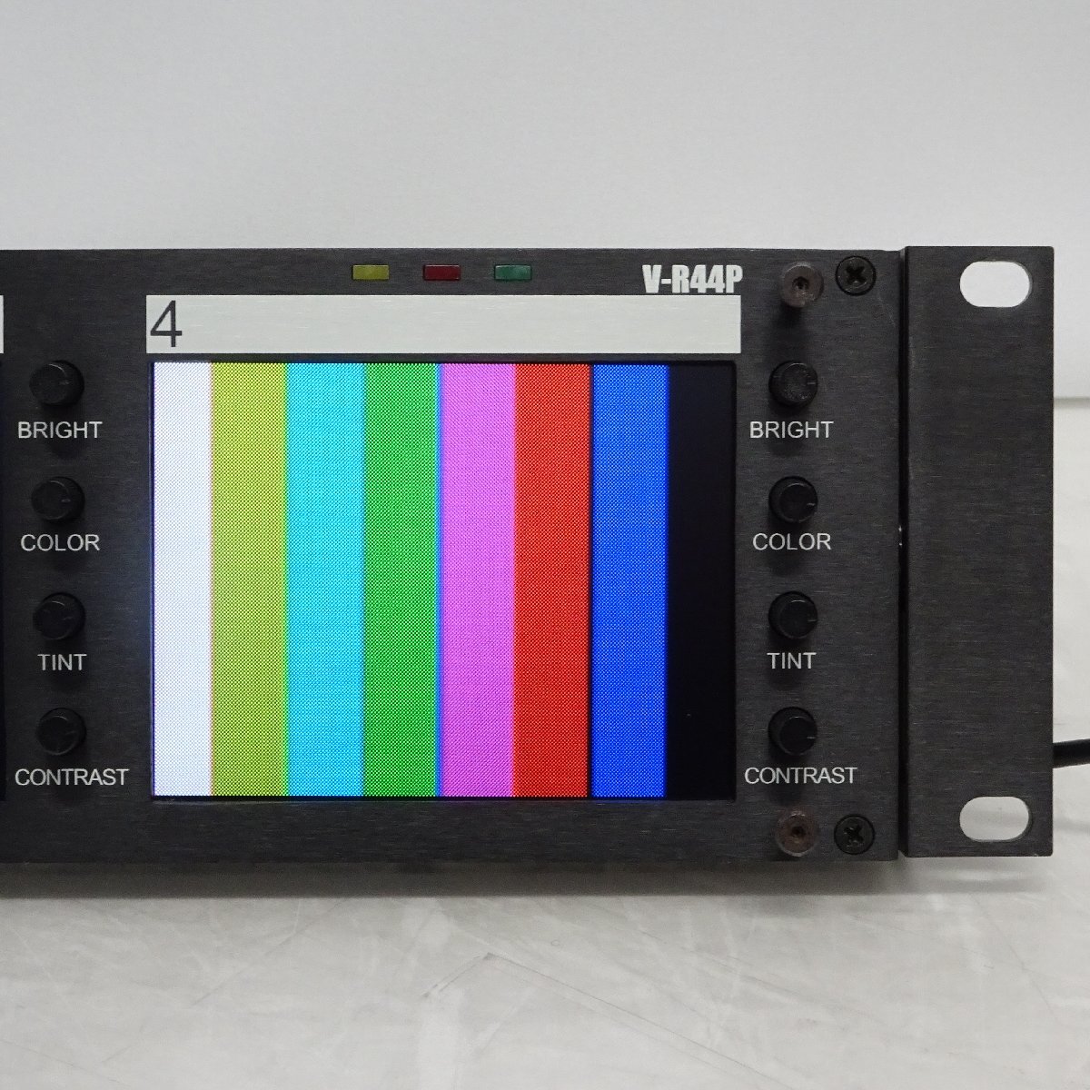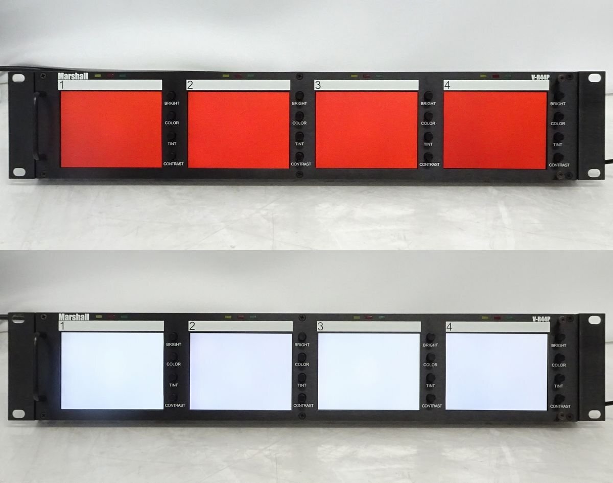 商品説明 Marshall V-R44P 4型4連ラックマウント液晶モニター の出品です。 コンポジット入力対応の4連モニタとなります。 ☆動作確認につきまして コンポジット映像にて動作を確認しました。 4画面共に出力OKです。 白の発色はやや黄ばみが発生しつつありましたが目立つ物ではありません。 ブライトネス・コントラストなど各種ツマミ操作はOKです。 液晶画面に目立つ傷はありません。 中古/動作品として出品させて頂きます。 商品詳細