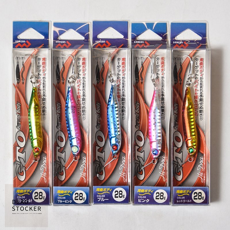 【新品5点】DRAGON GTO 湾曲ボディ 28g グリーンゴールド,ブルーピンク,ブルーピンク,レッドゴールド 青物 ヒラメ マゴチ シーバス ショア