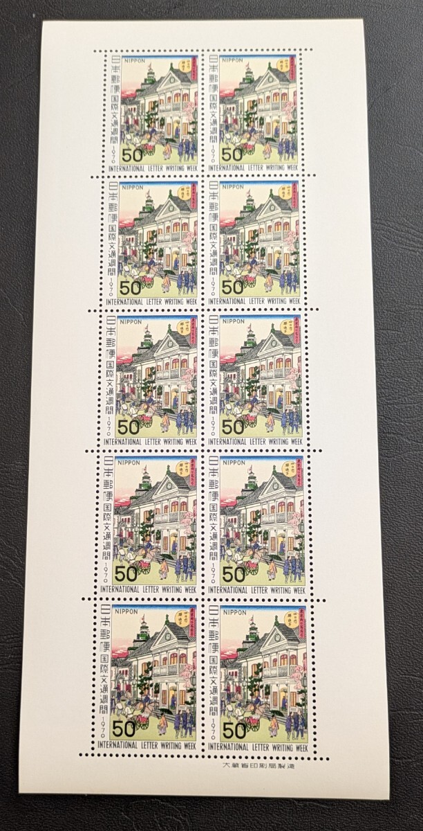 1970年・特殊切手-国際文通週間シート(駅逓寮図)