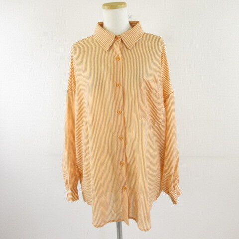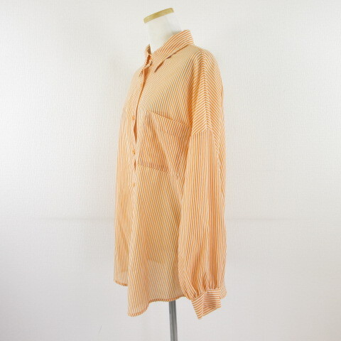 ウィゴー WEGO ボリュームスリーブシアーシャツ 長袖 ストライプ オレンジ F *T514 レディース